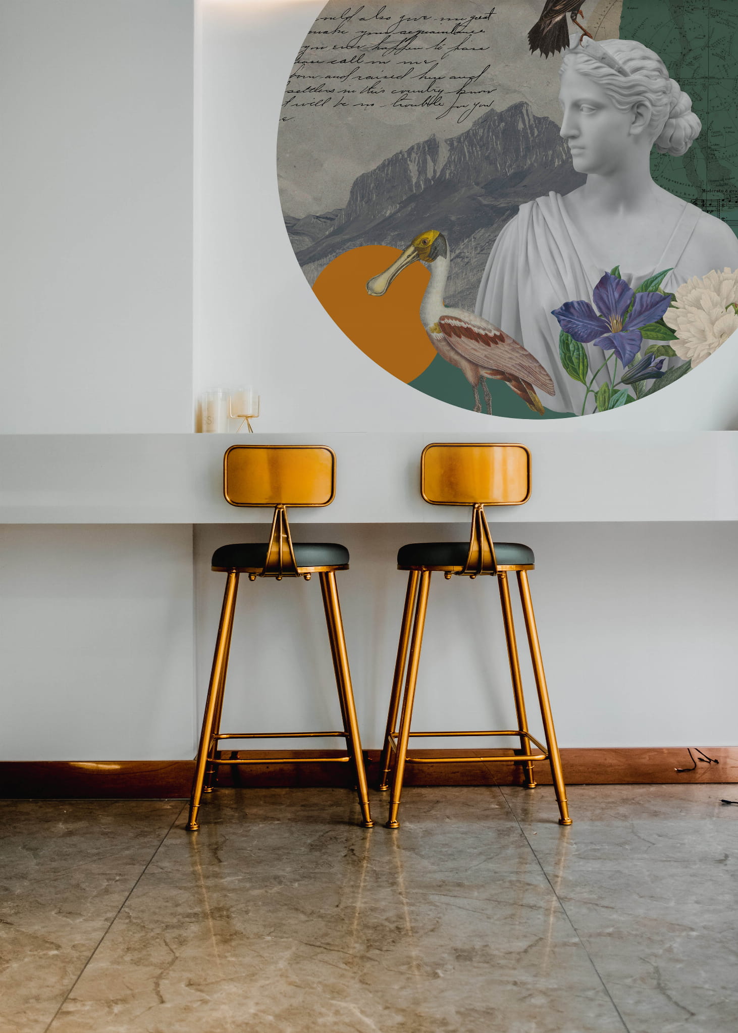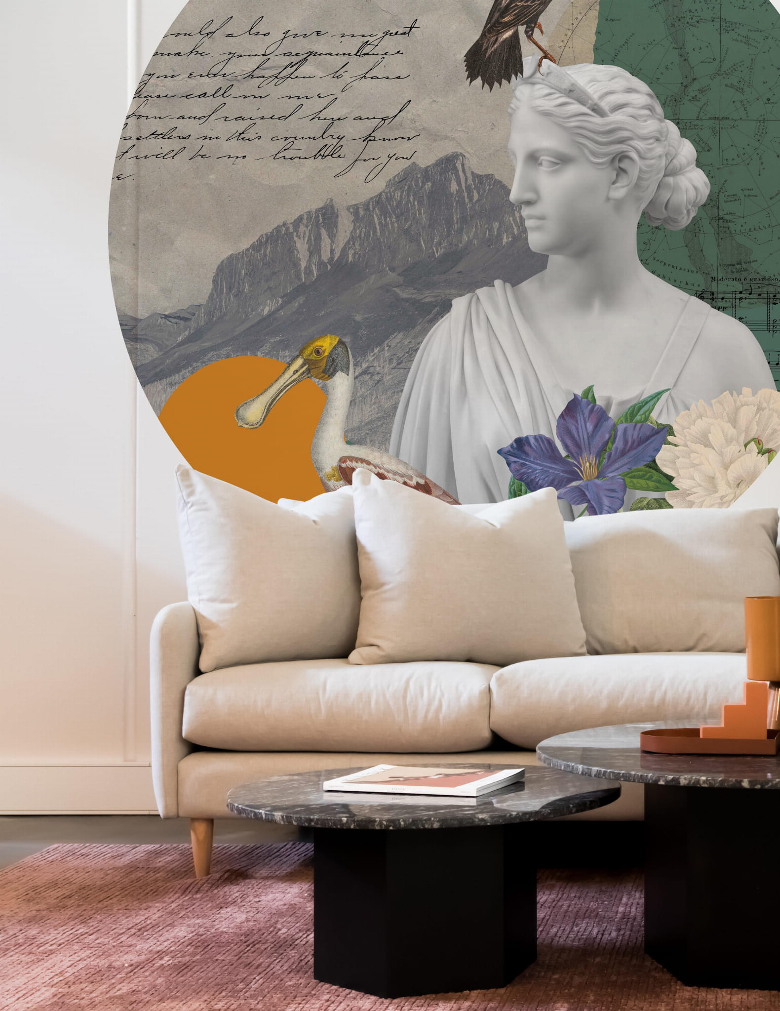Modern Art. Naklejka kolaż. Wzór dzięki swoim żywym kolorom, idealnie odnajdzie się w monochromatycznych pomieszczeniach. Wspaniale dopełni wnętrza urządzone w stylu klasycznym, jak i nowoczesnym.