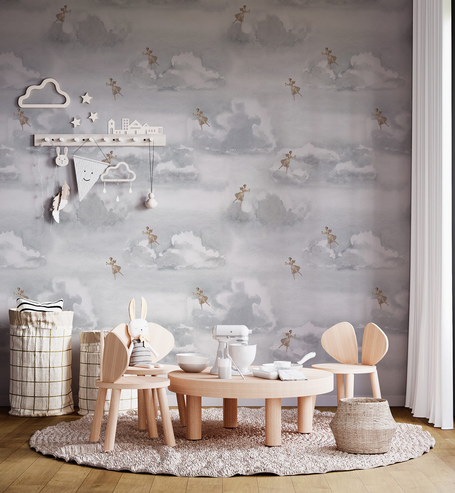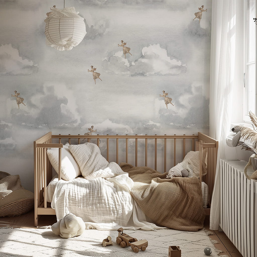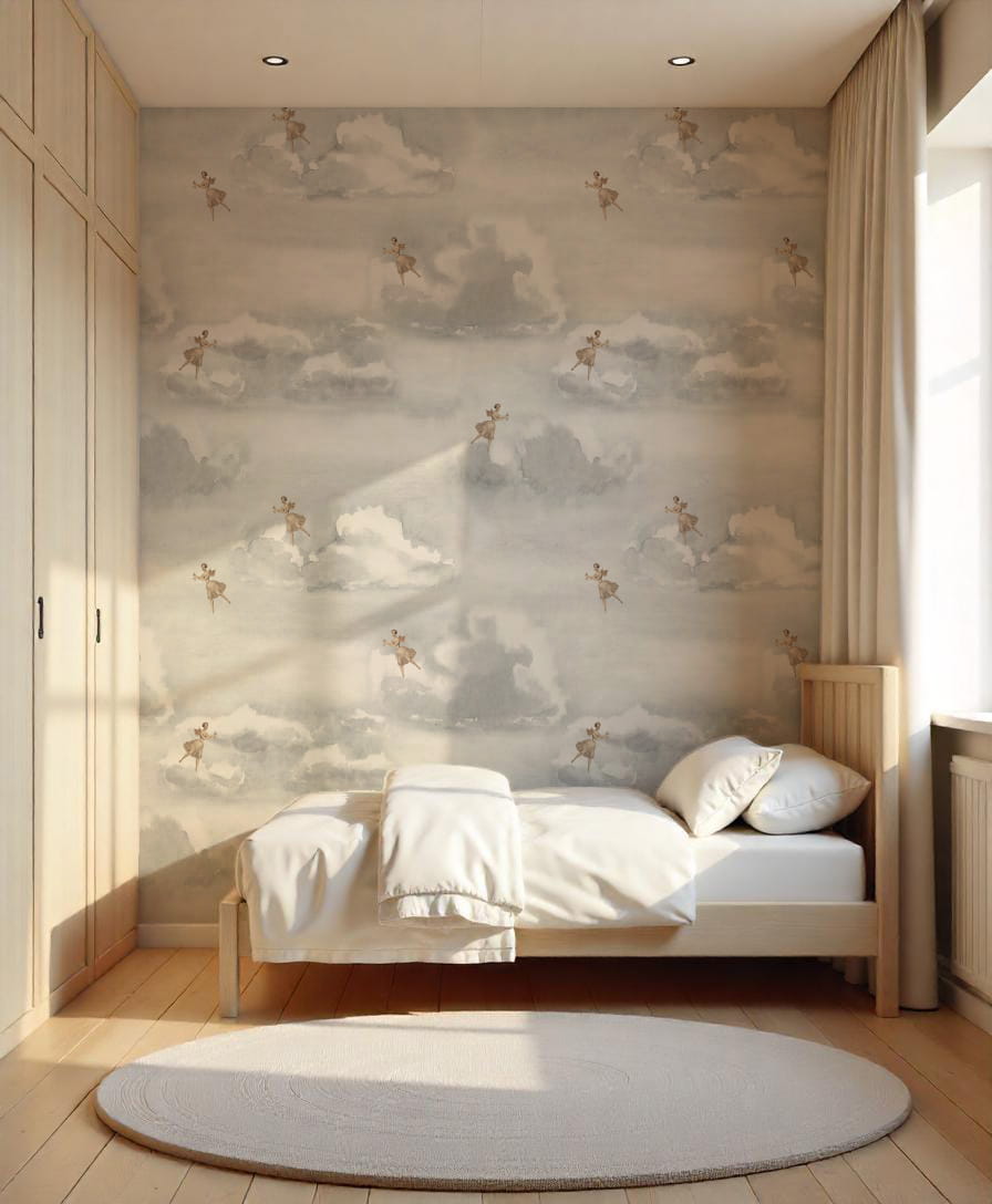 Ta subtelna tapeta pozwoli Ci dodać odrobinę tekstury i elegancji do każdego pokoju, utrzymując przy tym prostotę i subtelność wnętrza. Zanurz się w chmurach i daj się ponieść w niebiosa.
