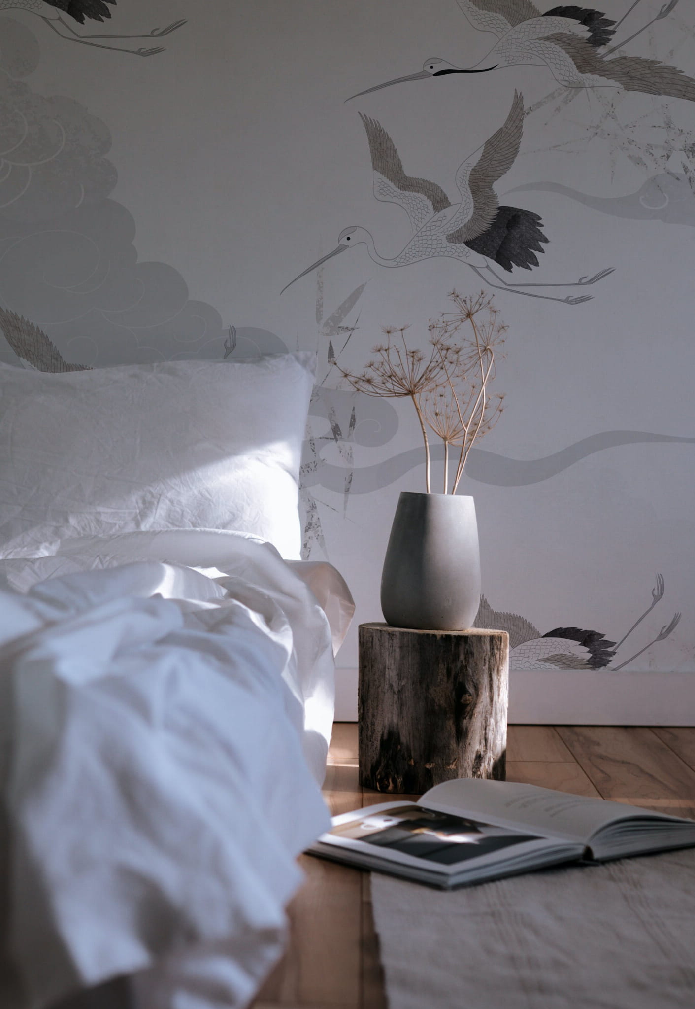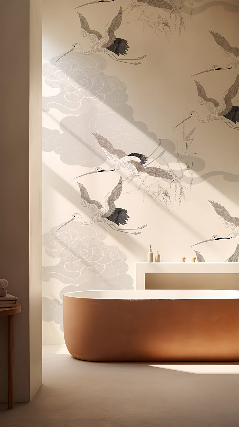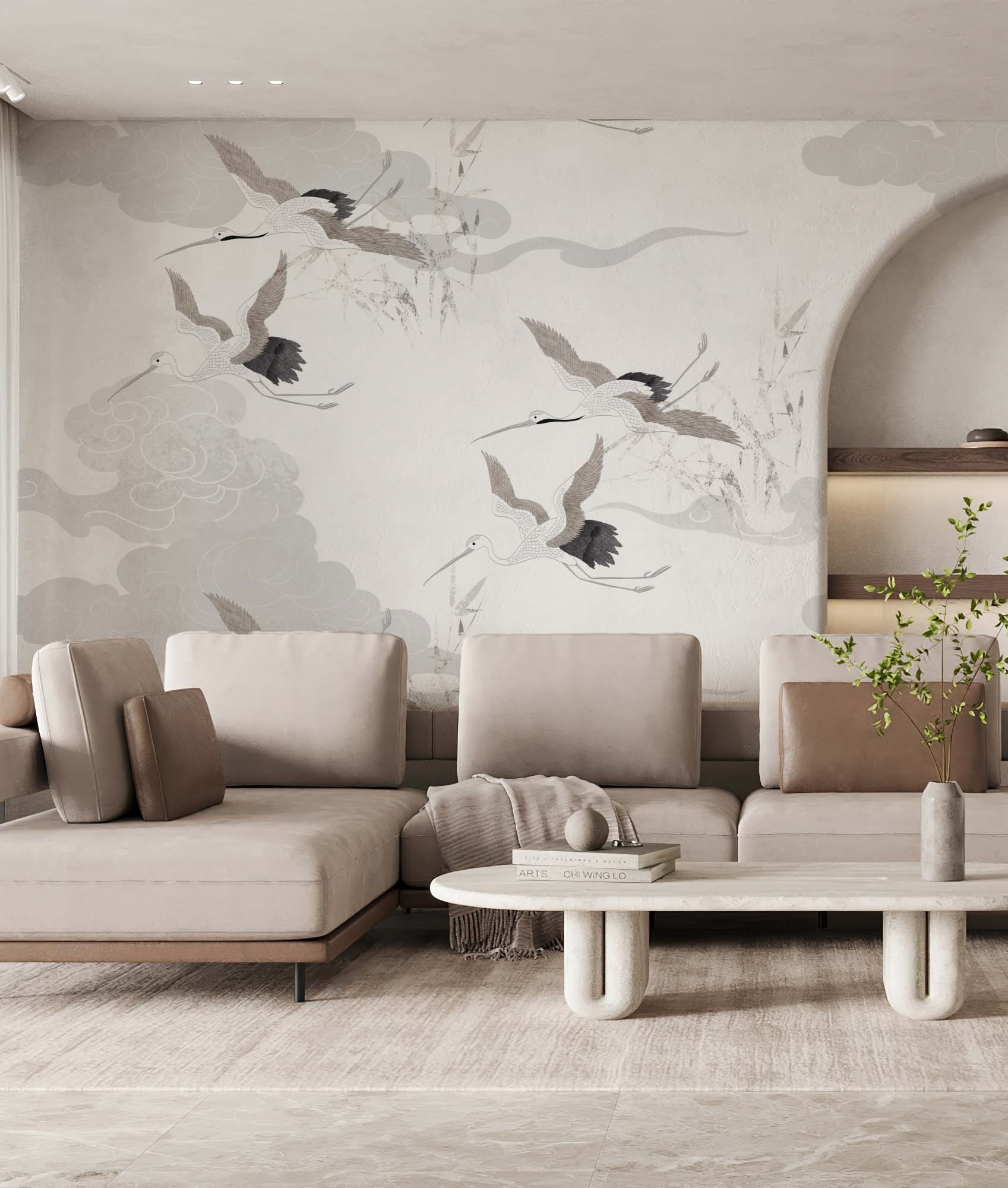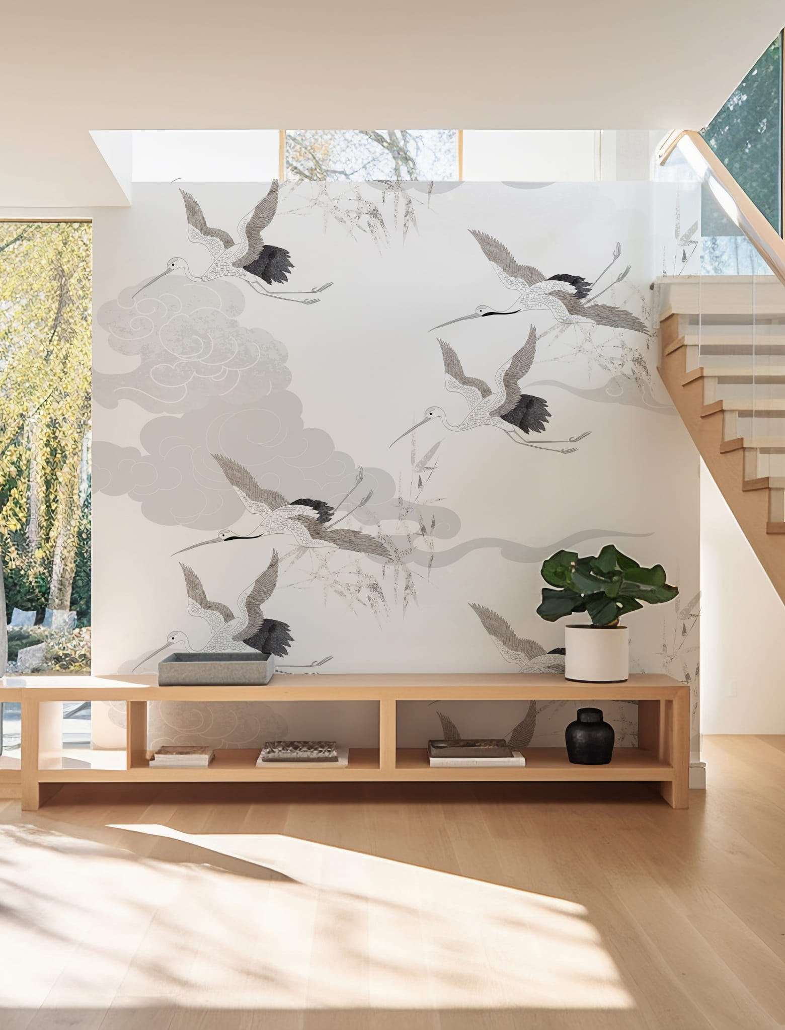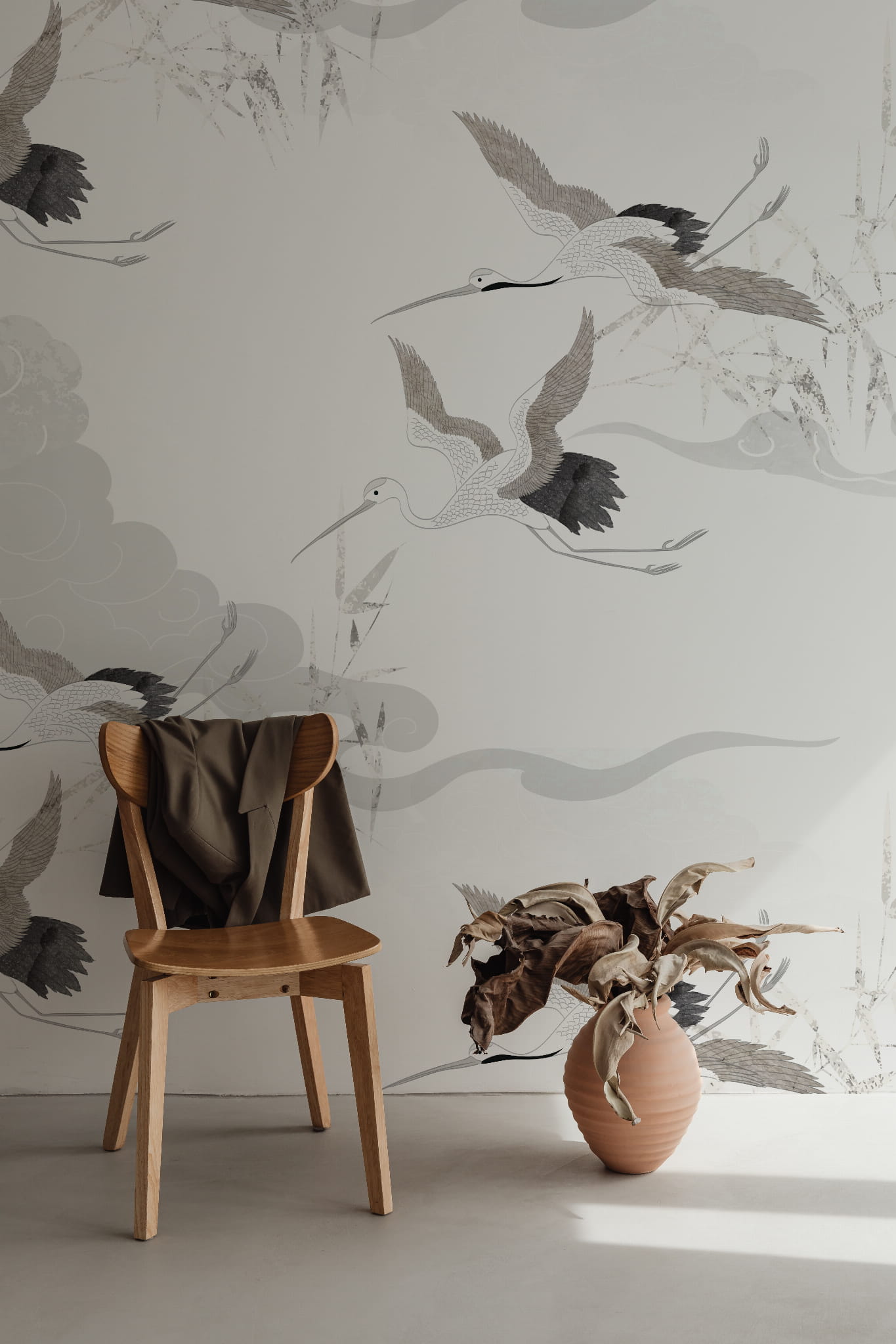 Daj się unieść w podniebną przygodę wraz z naszymi klasycznymi żurawiami w locie. Delikatne odcienie szarości przyjemnie wkomponują się na każdej ścianie i zamienią kiedyś nudny pokój w niepowtarzalne wnętrze.