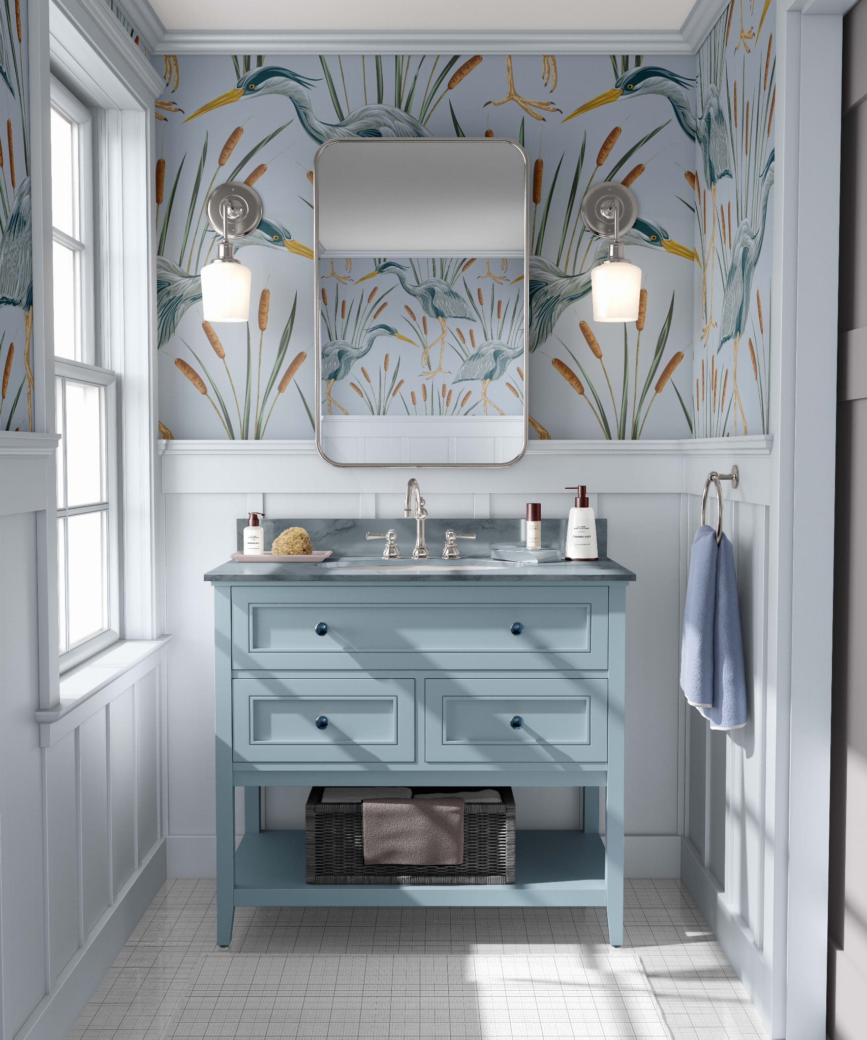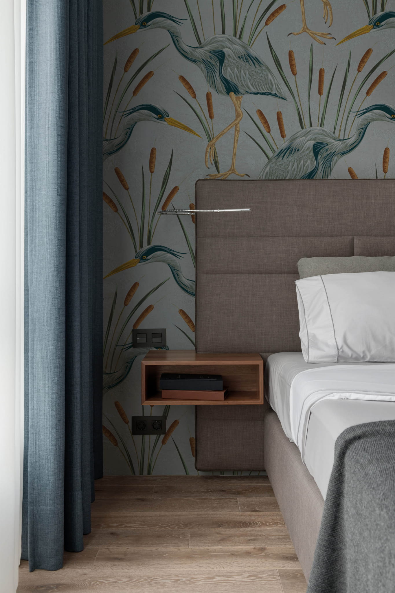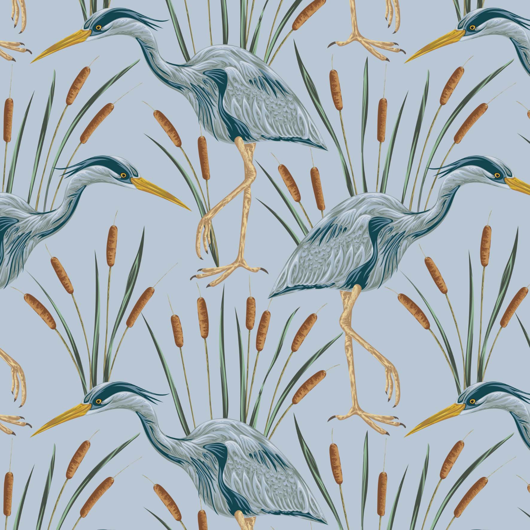 Eleganckie czaple oraz stonowane odcienie niebieskiego to gwarancja szyku w każdym pomieszczeniu. Ten wzór fantastycznie wkomponuje się w sypialni czy salonie i nada wnętrzu nowego życia na lata.