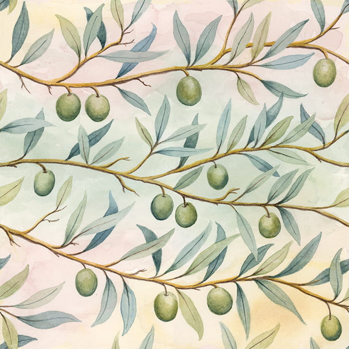 Symbol oliwki nabierał wielu znaczeń na przestrzeni ostatnich tysiącleci, nie mogło go zabraknąć również u nas. Płynne linie gałązek oliwnych, na których wiszą pyszne oliwki od razu przywodzą na myśl włoskie wakacje.