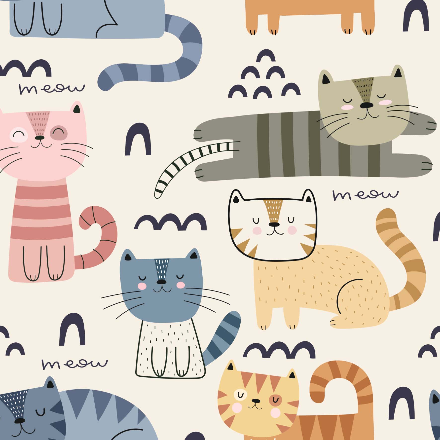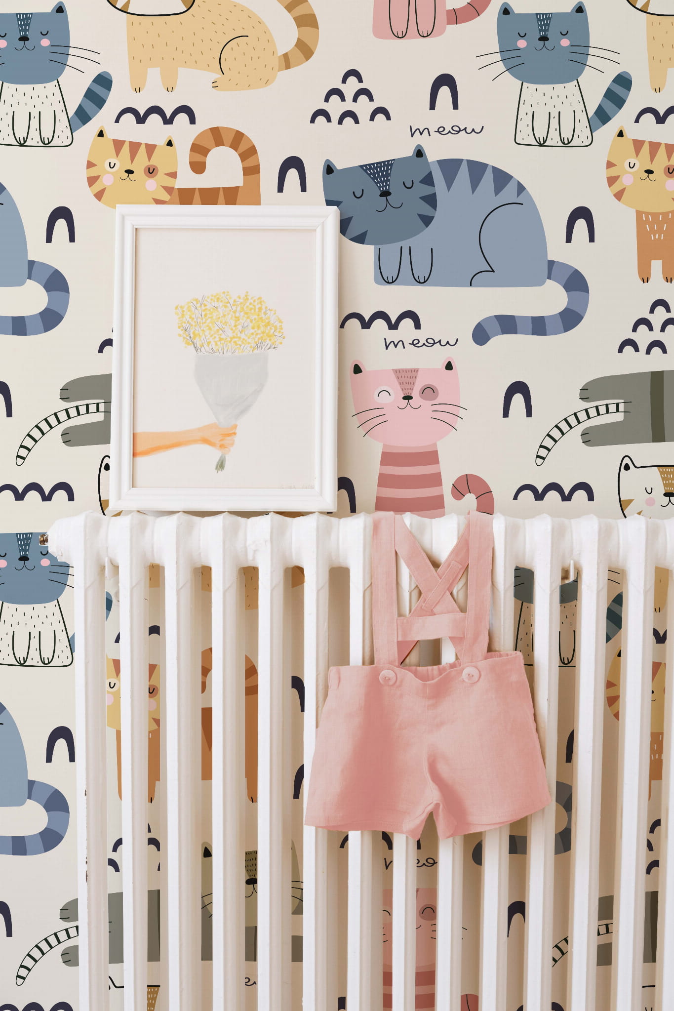 A kto to tak mruczy? Małe uszka, słodkie łapki i miękkie ogonki…to kolorowe kotki! Dodaj koloru do pokoju swojego dziecka z tą uroczą i miękką tapetą.