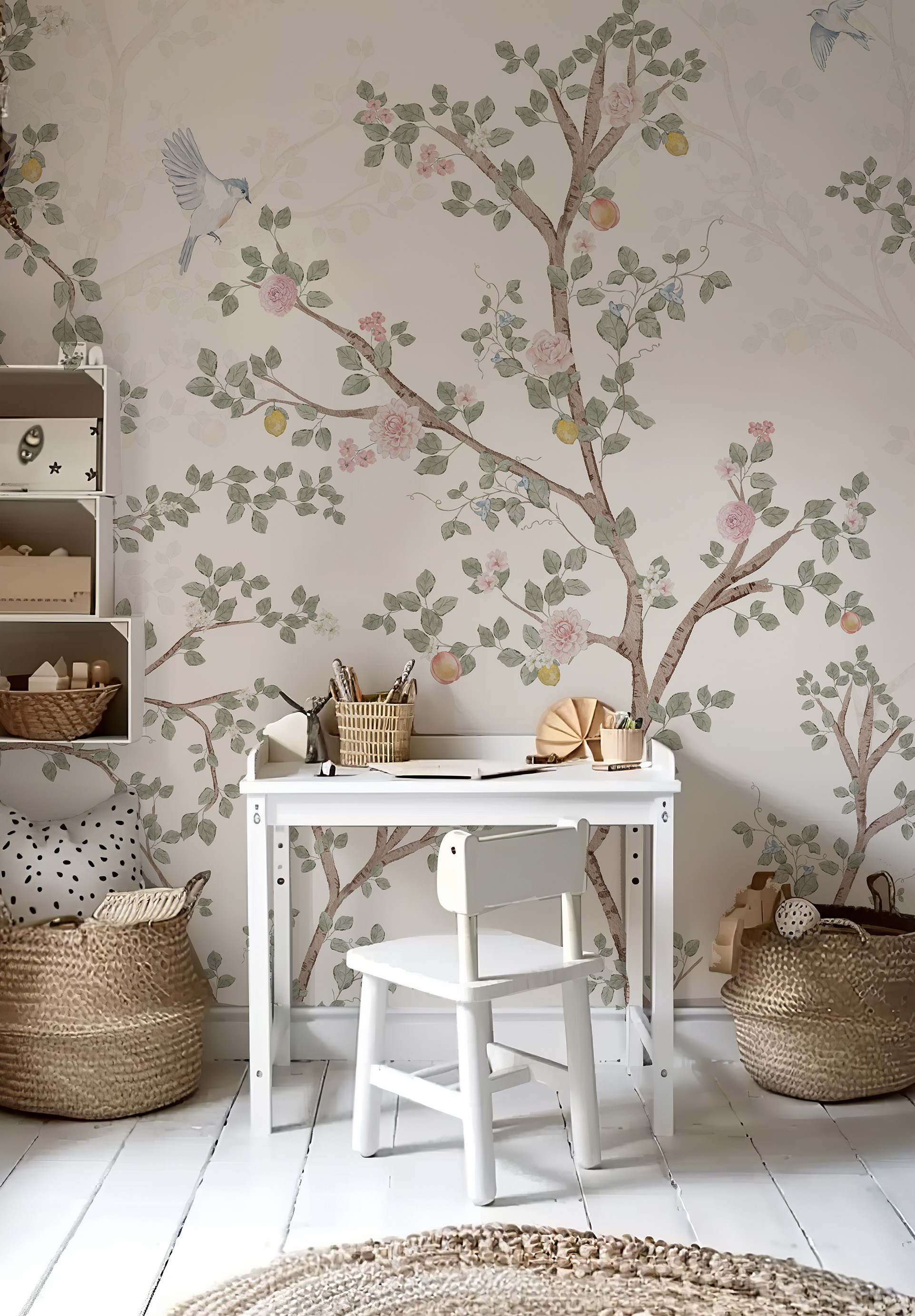 Przepiękny drobny wzorek w kolorach pasteli to niebanalny pomysł na wykończenie wnętrza W połączeniu z lamperią tworzy duet idealny. My nie mogliśmy zdecydować się, czy lepiej wygląda w wersji dla dorosłych czy dla dzieci - co wolicie?