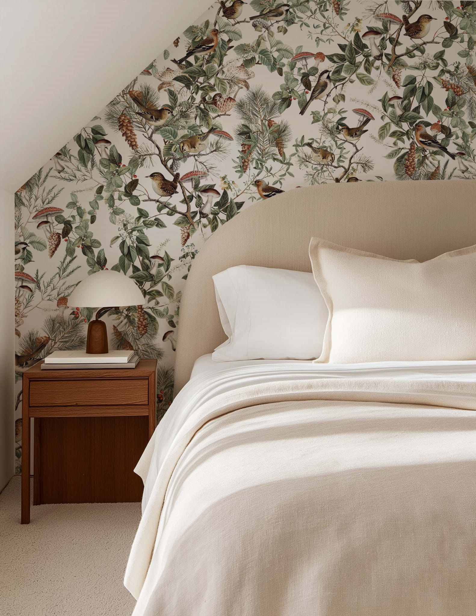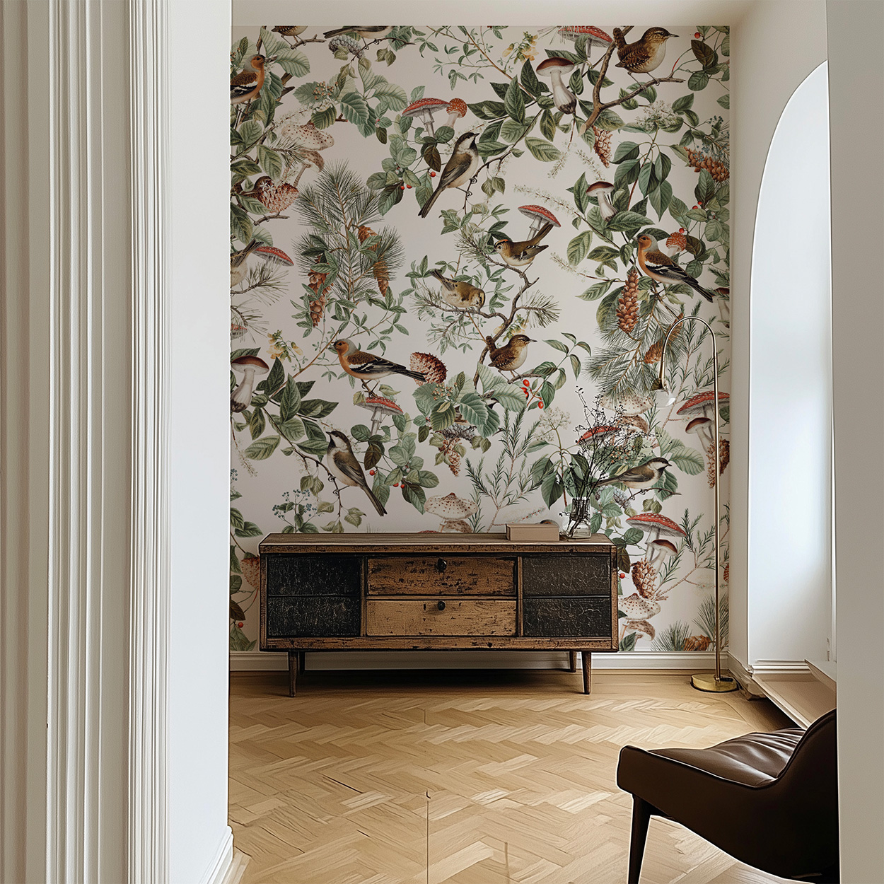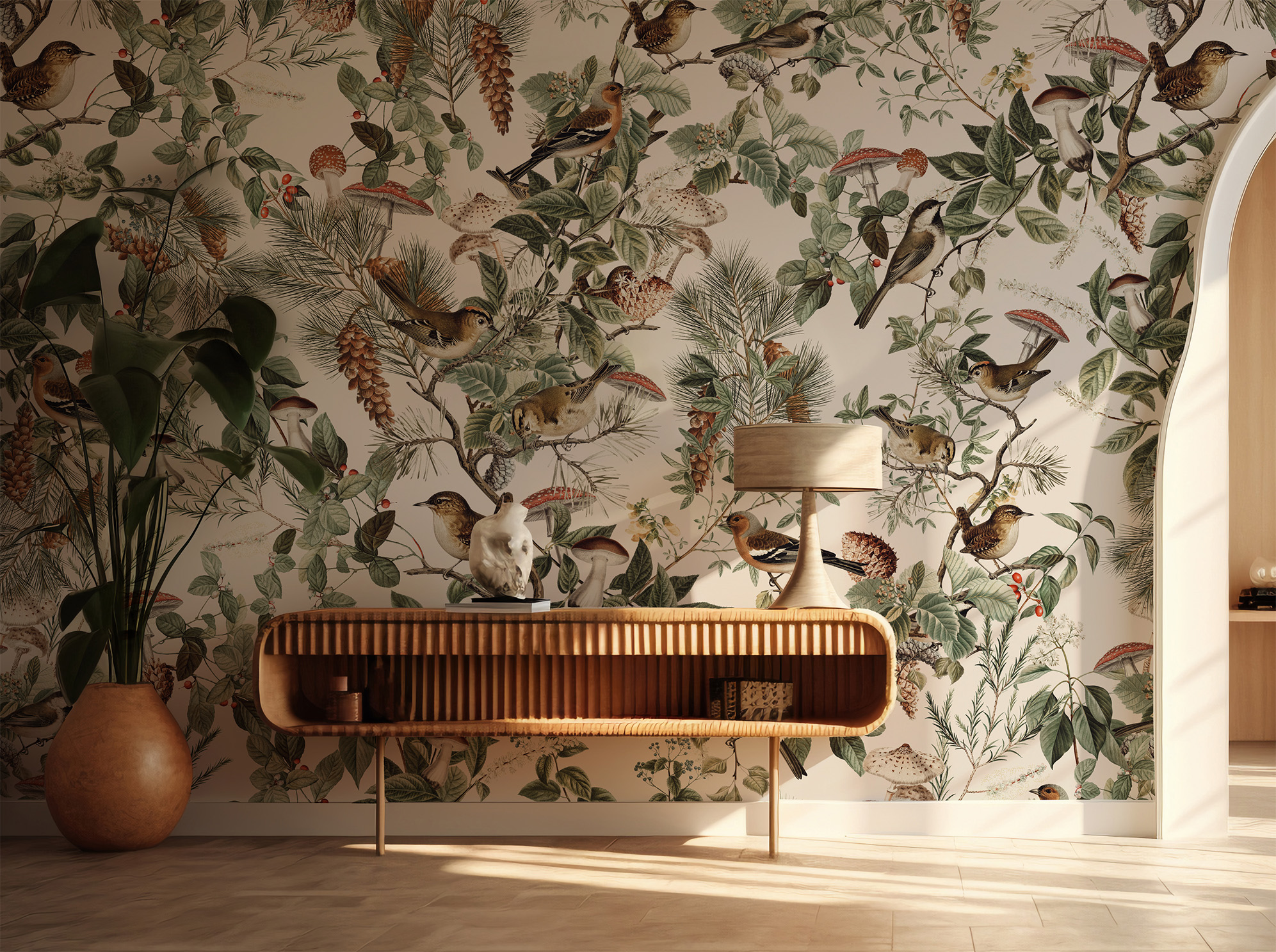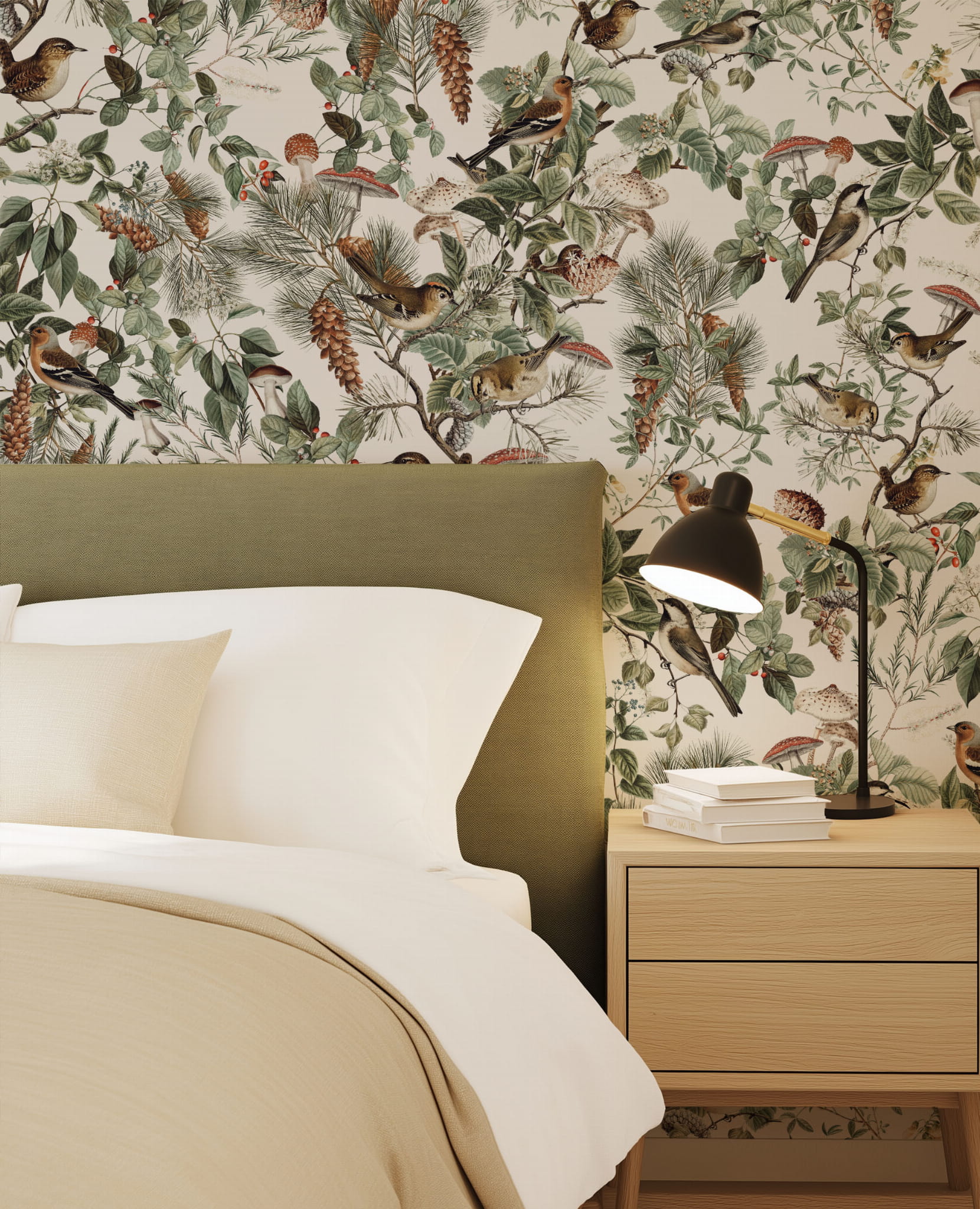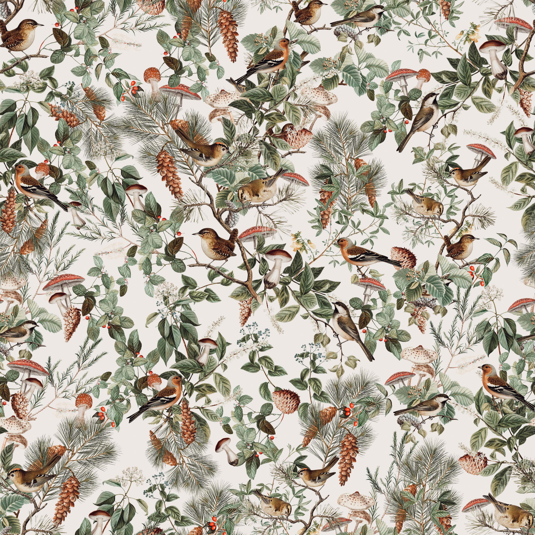 Zapach lasu po deszczu, igliwie i kora pachnąca żywicą, powiew lekko chłodnego wiatru, śpiew ptaków... To wszystko niesie ze sobą wzór Forest Birds, rozpieszcza on zmysły, zachwyca bogactwem barw i detali, a przy tym jest niesamowicie modny i odmieni wnętrze, nadając mu klasy i ponadczasowego charakteru.