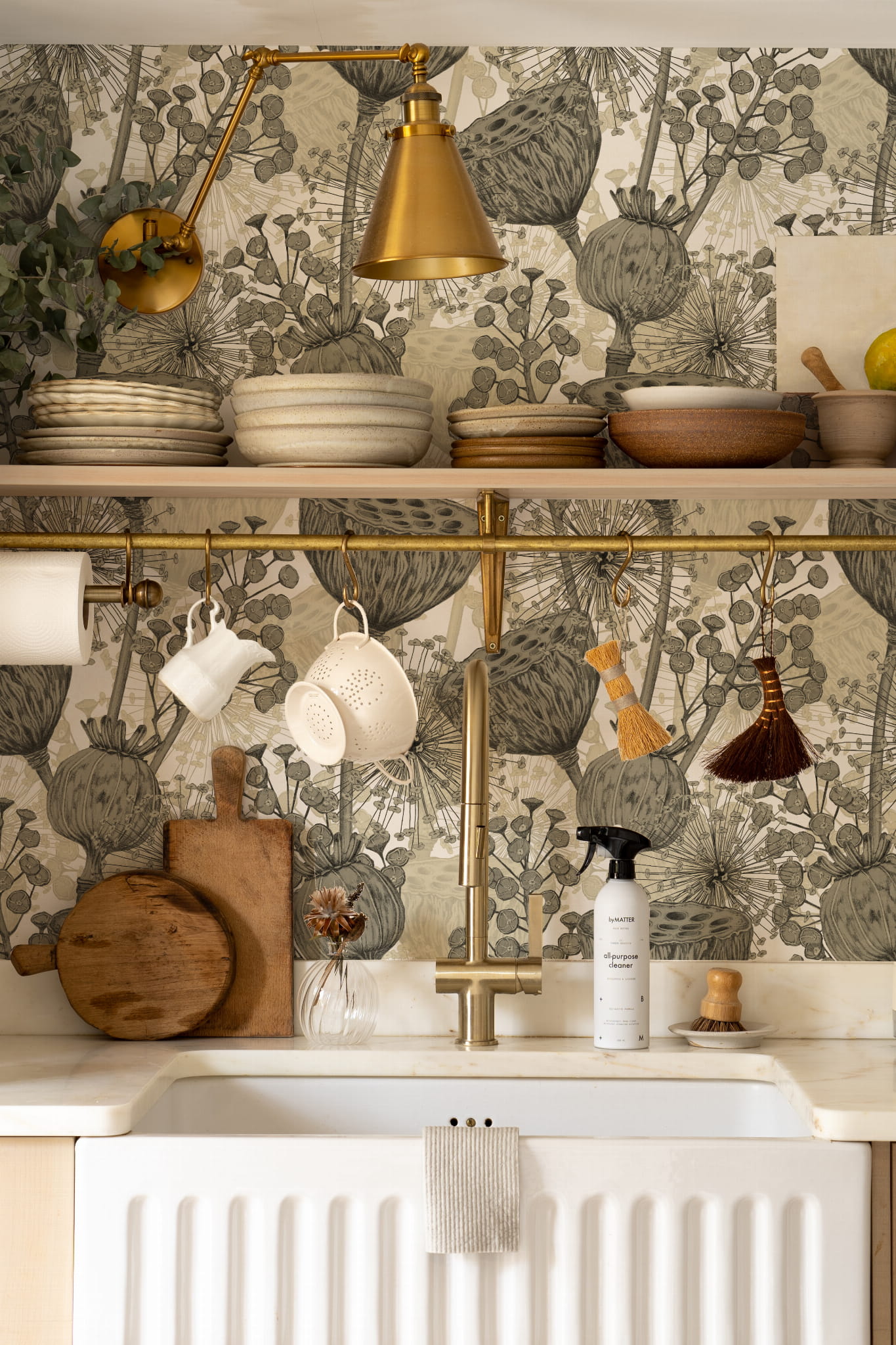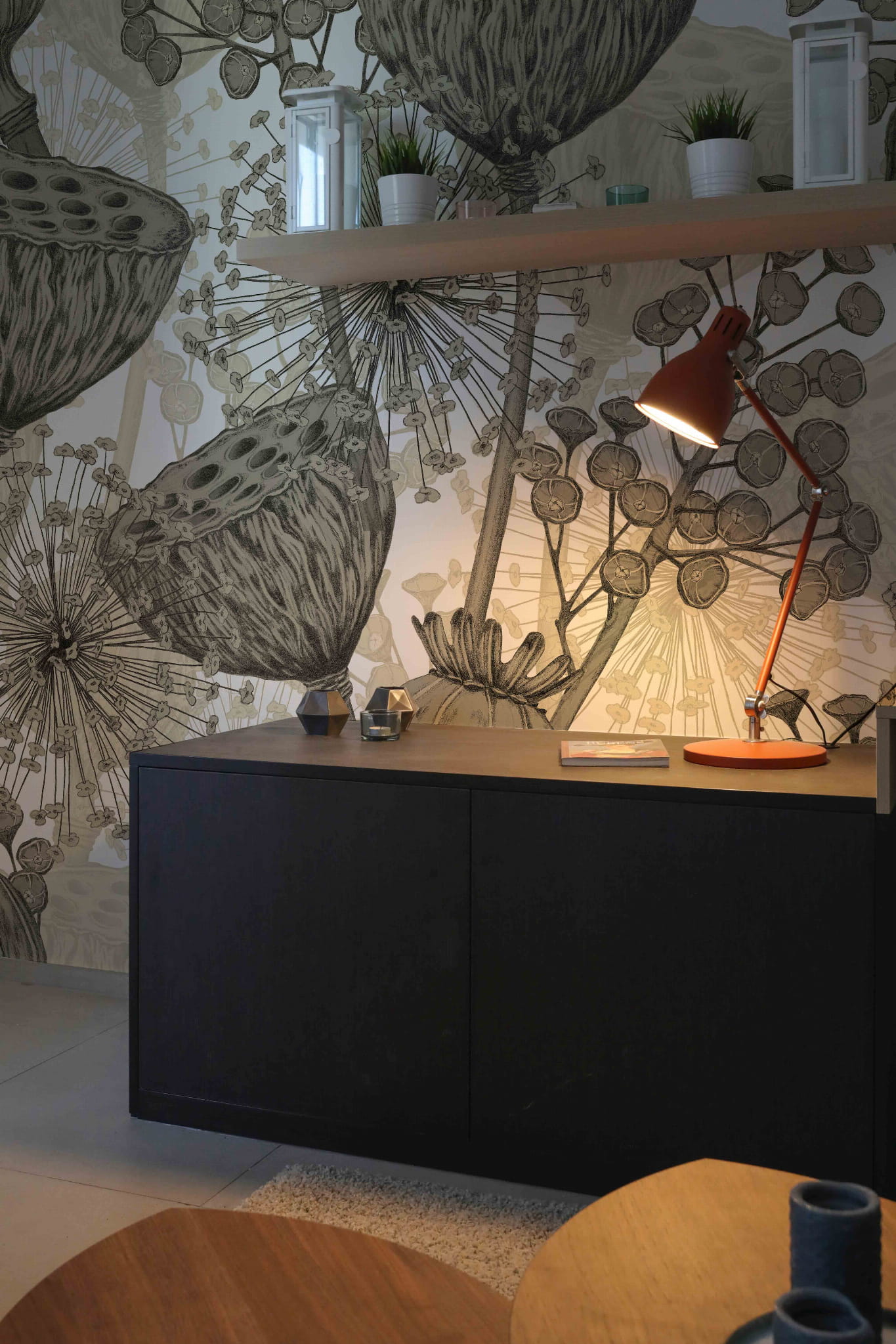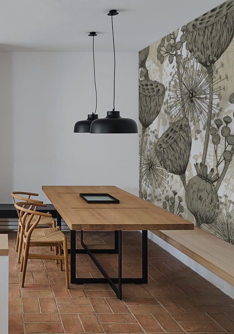 Tapeta mak polny to piękny wzór w stonowanych odcieniach beżu. Przywołuje ona spokój i delikatność, dodając pomieszczeniu ciekawego, robiącego wrażenie akcentu.