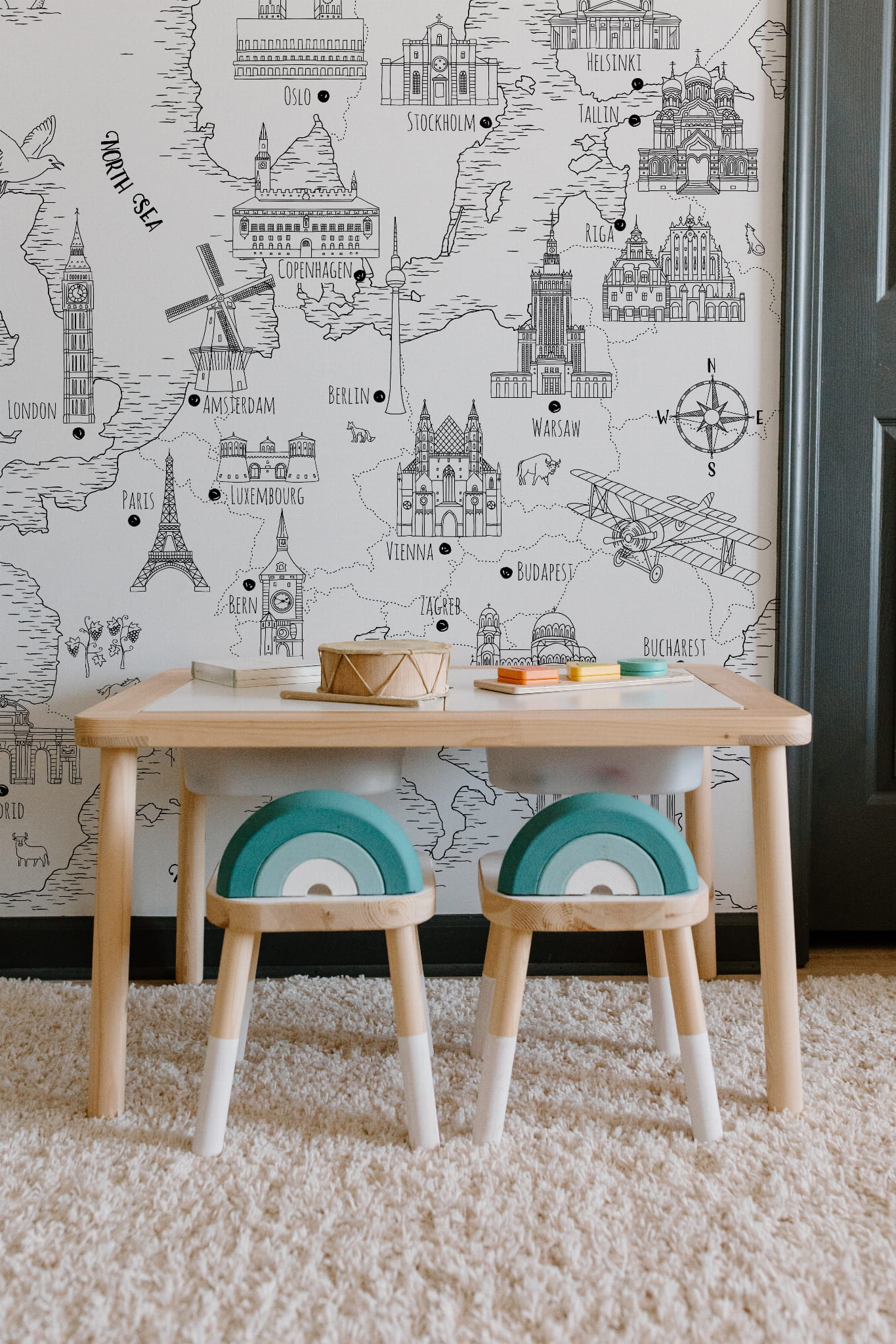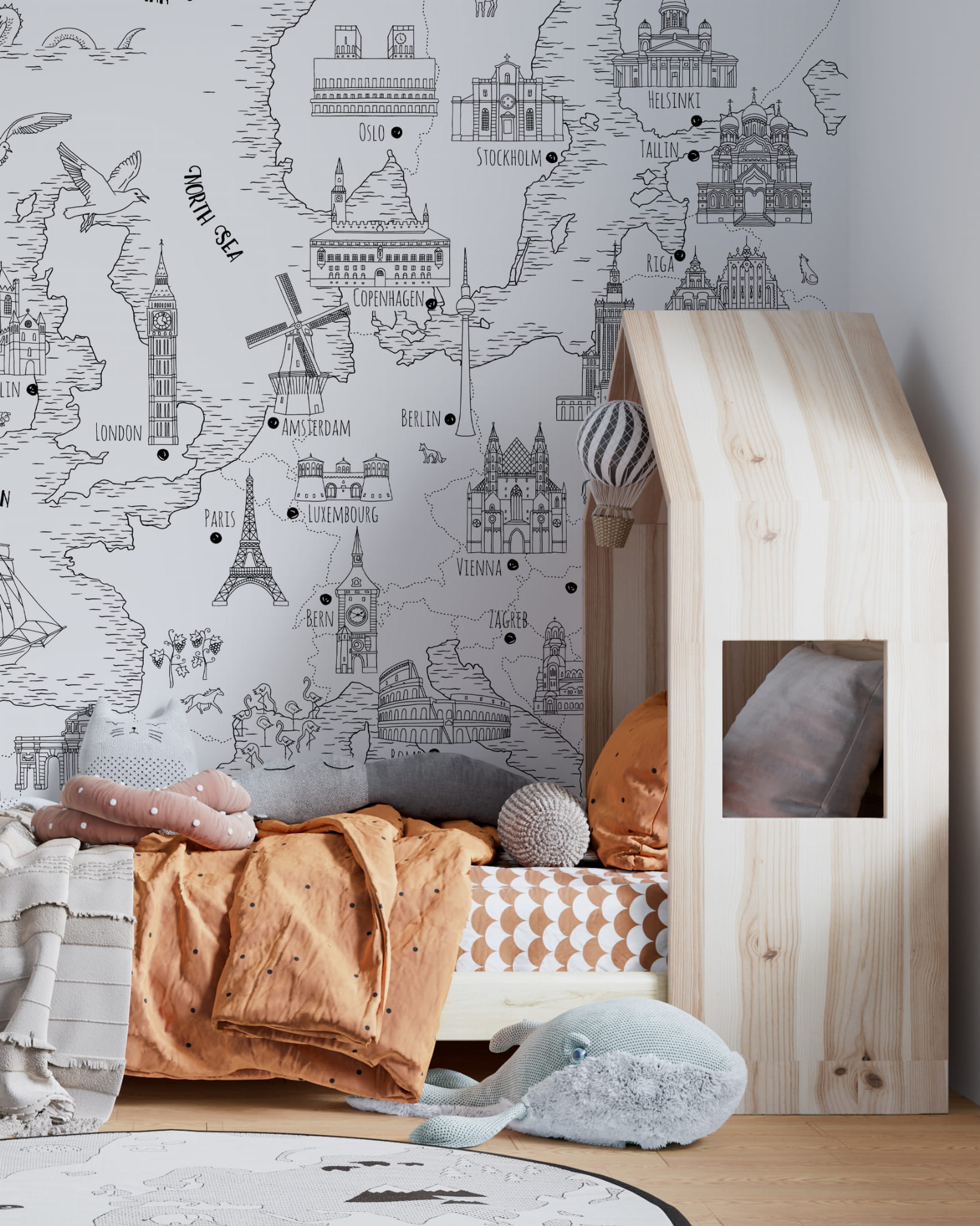 Przenieś się do świata wielkich podróżników i odkrywców, do ich bezkresu i przygód, jakie można w nim przeżyć. Ta tapeta nie dość, że będzie idealną ozdobą ściany to pełni charakter edukacyjny pokazując dziecku jak wygląda świat na mapie.