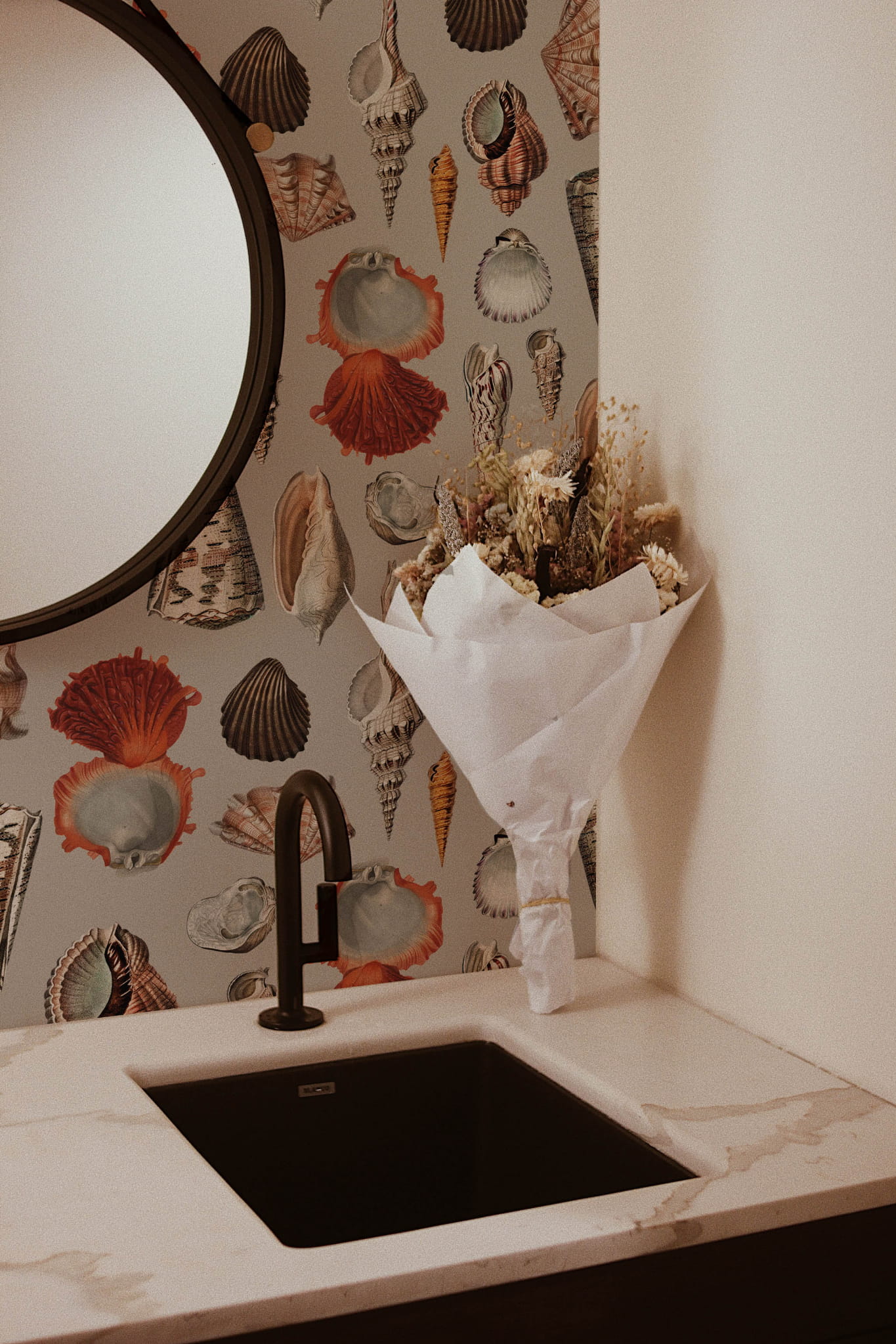 Tapeta ''Morskie muszle beż'' to wyjątkowa dekoracja przedstawiająca delikatne wzory muszli morskich na neutralnym, beżowym tle. Jej subtelny design nawiązuje do atmosfery nadmorskich plaż, dodając pomieszczeniu świeżości i spokoju. Ta tapeta świetnie komponuje się z aranżacją wnętrz o tematyce morskiej lub nadmorskiej, nadając im przyjemny, relaksacyjny charakter oraz wprowadzając elementy natury do przestrzeni mieszkalnej.