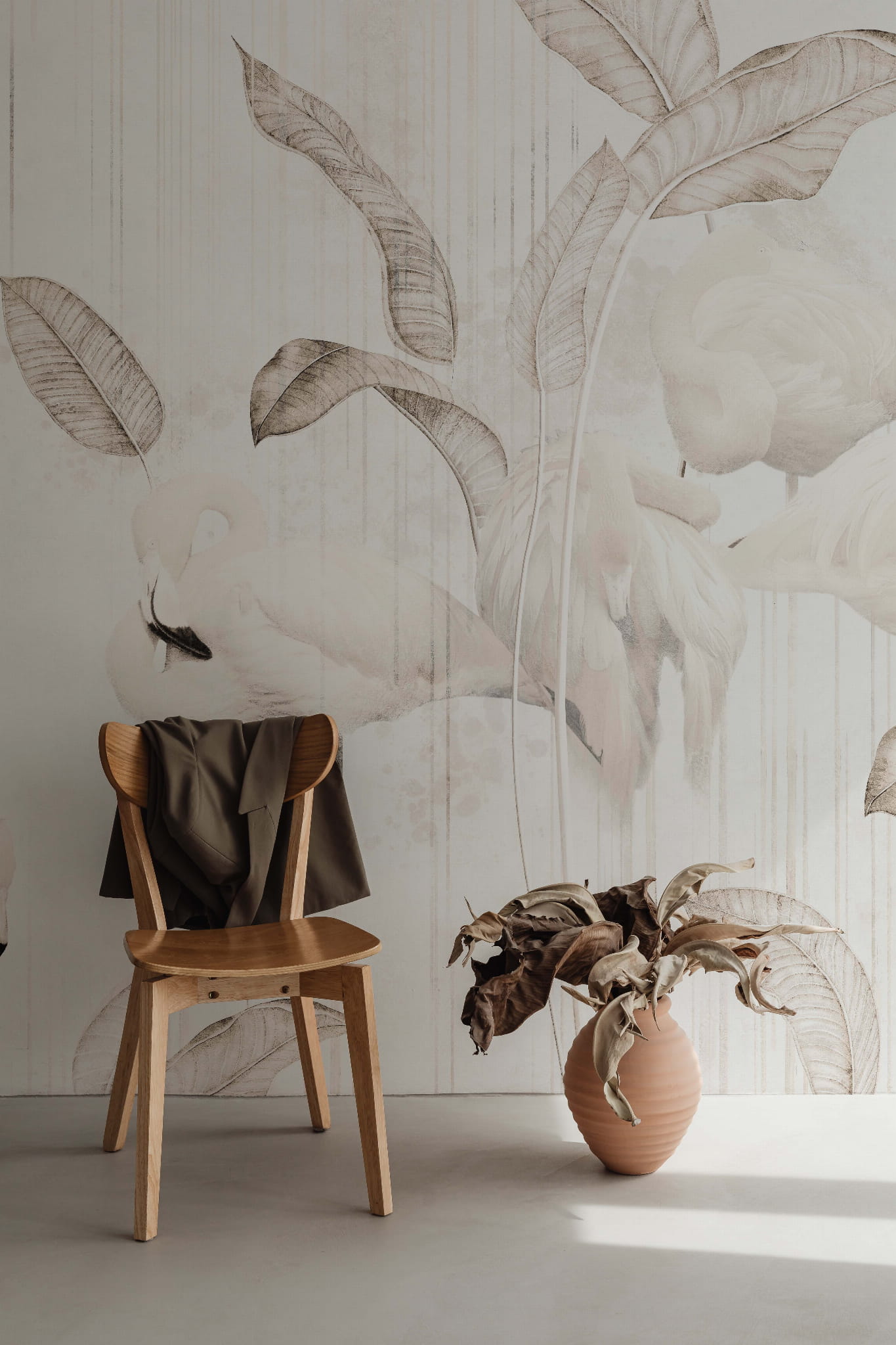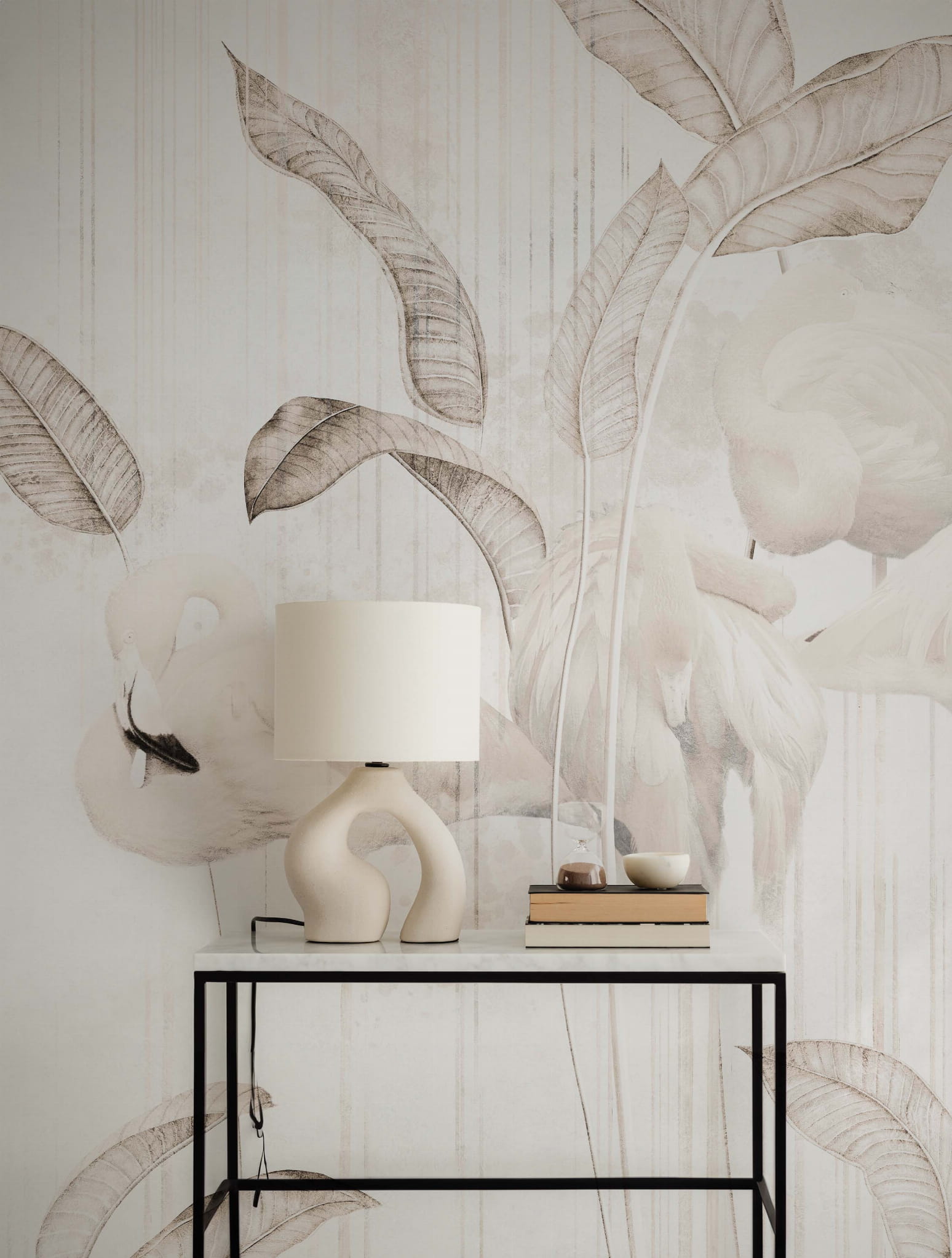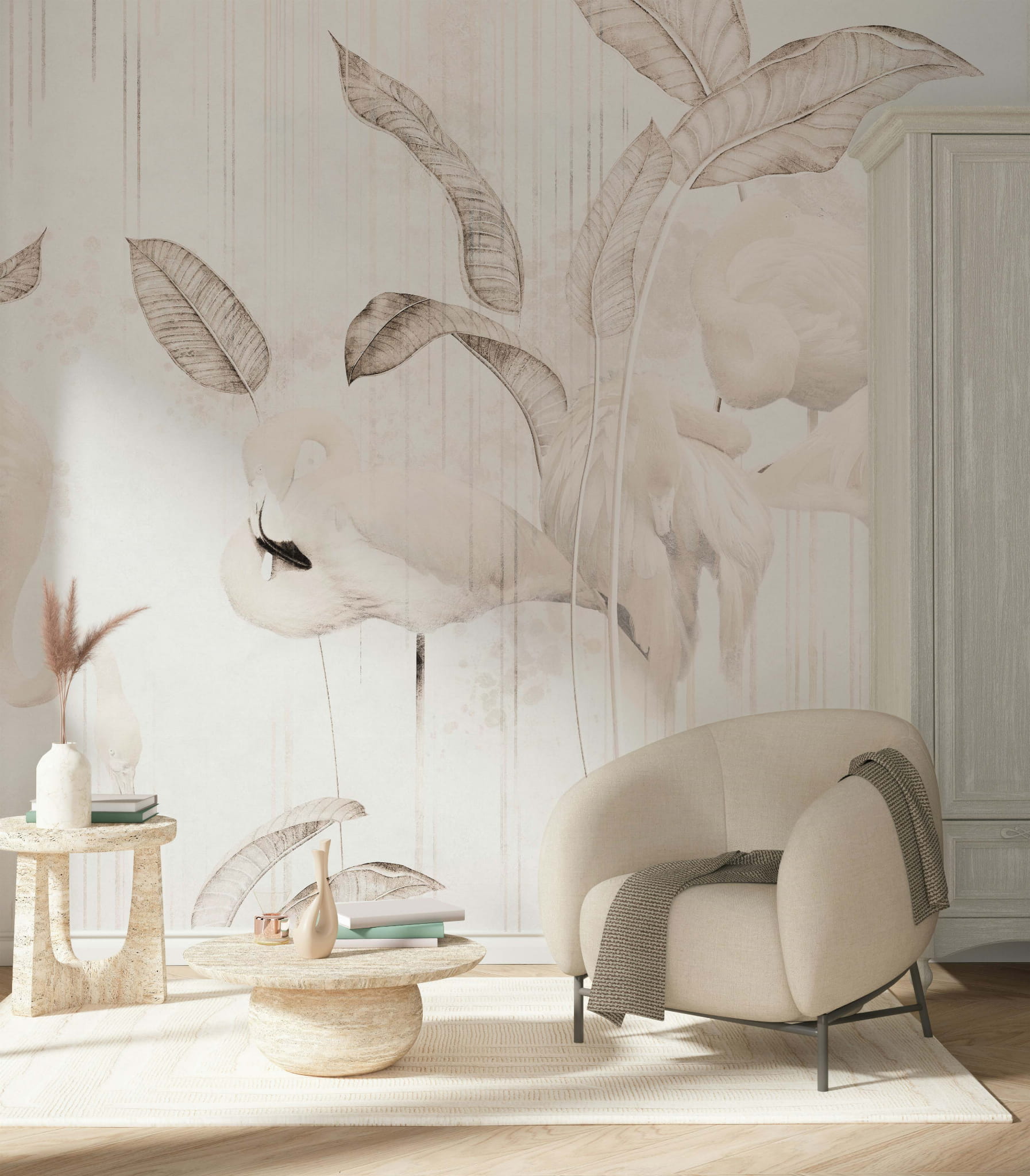 Białe flamingi to idealna tapeta dla każdego kto chciałby wprowadzić trochę życia do swojego pokoju, zachowując przy tym prostą paletę kolorów. Delikatne odcienie świetnie sprawdzą się w każdym pomieszczeniu nie tylko jako akcent, ale i jako główna gwiazda show.