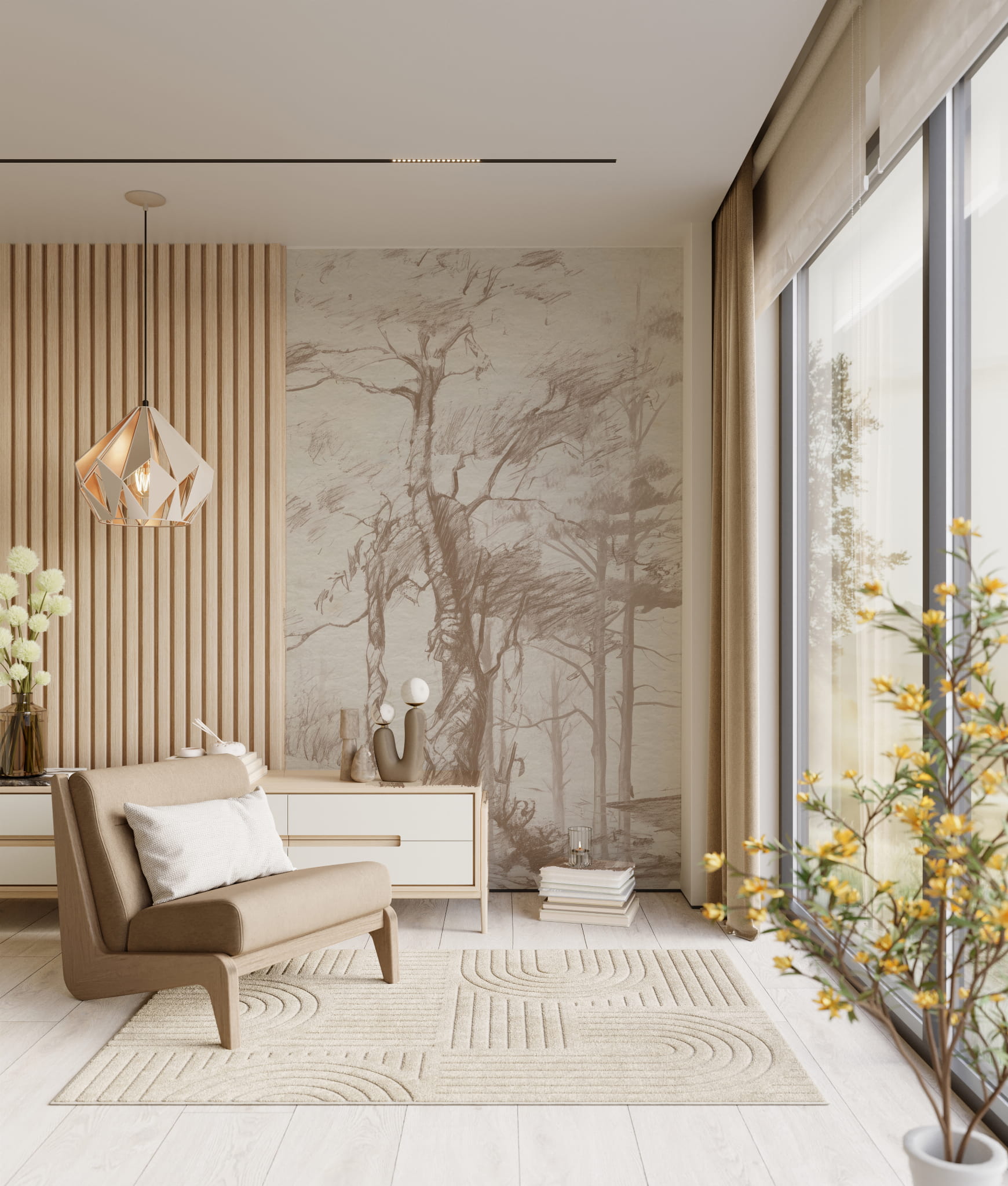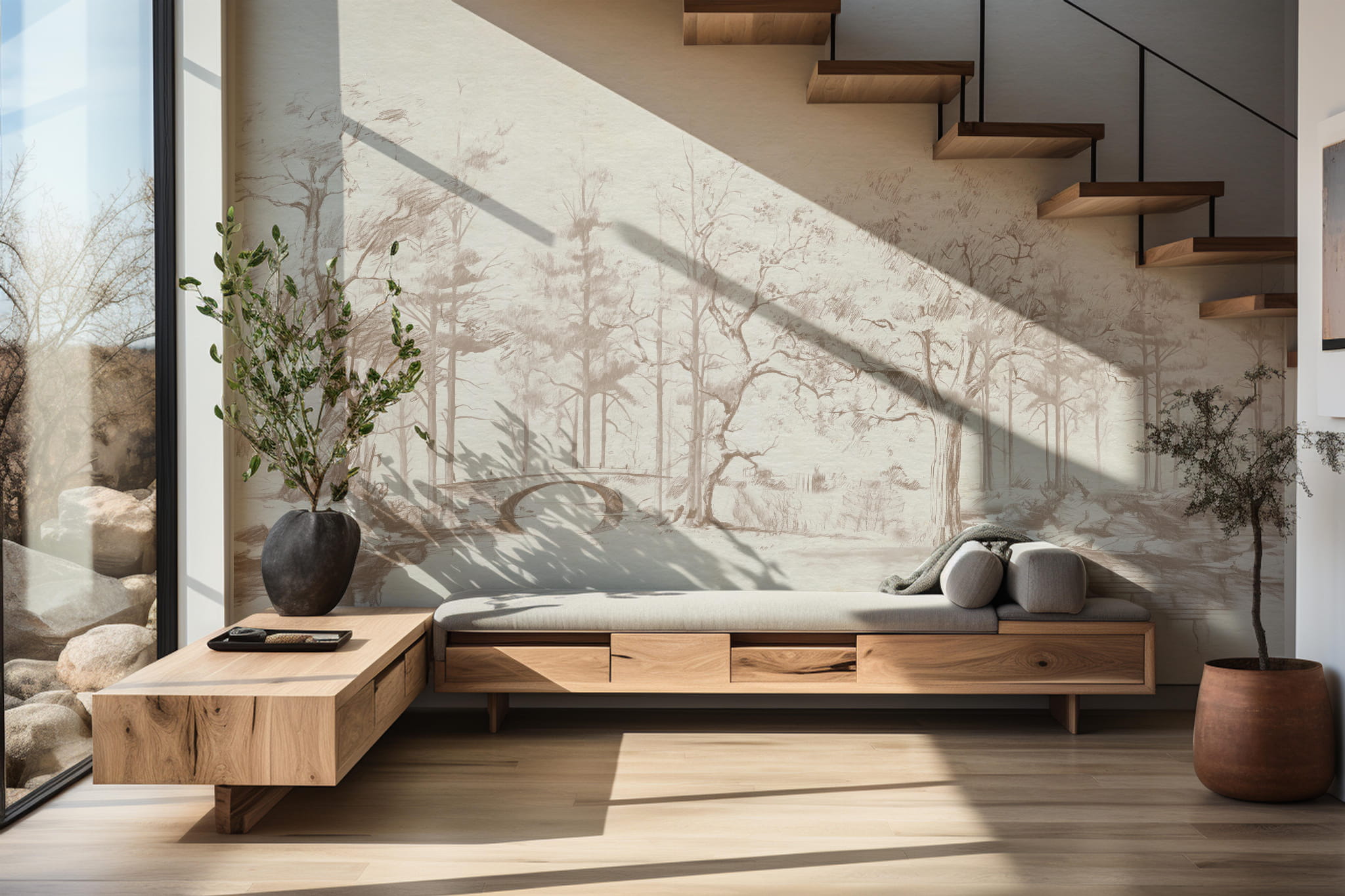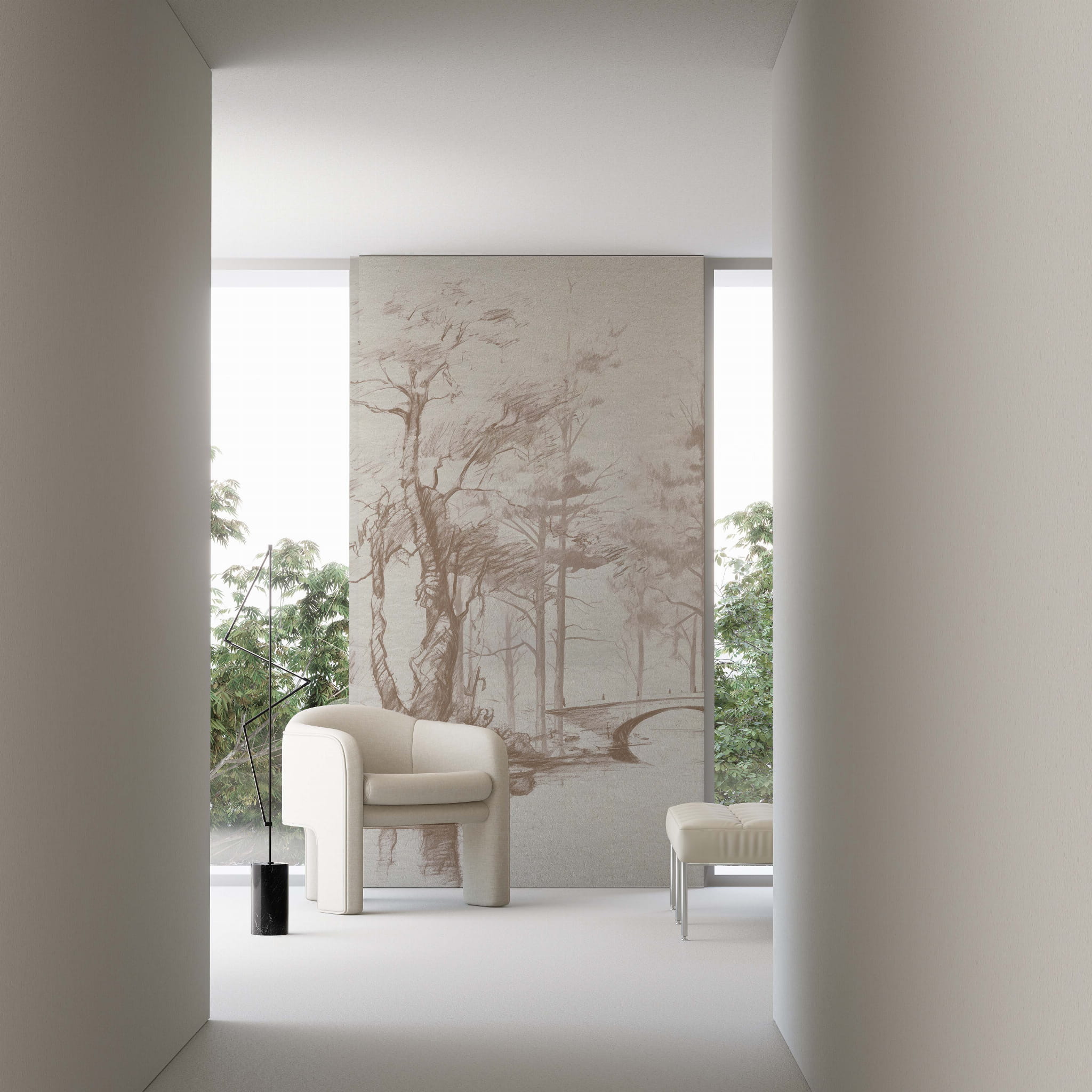 Tapeta Mural szkicowe Drzewa vintage