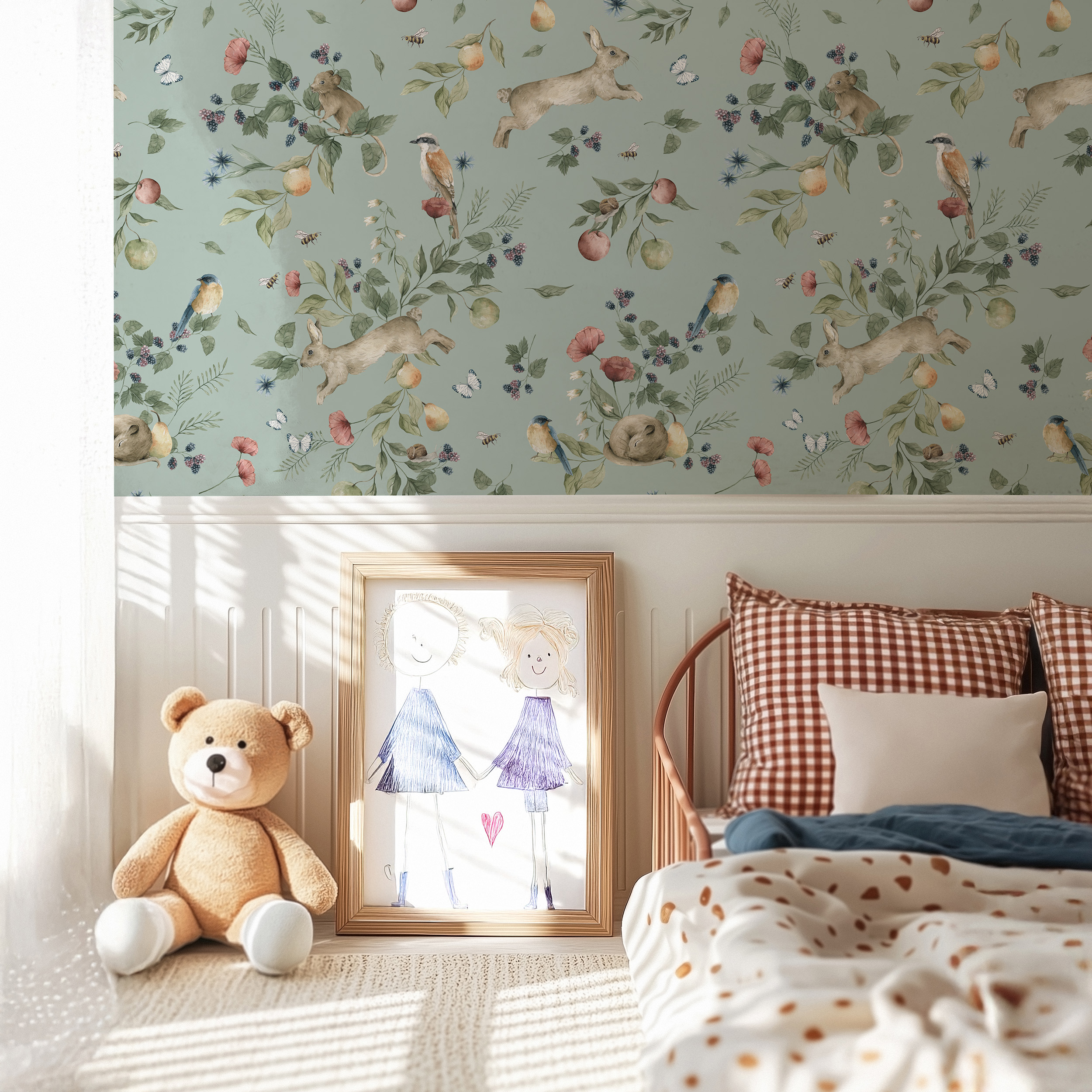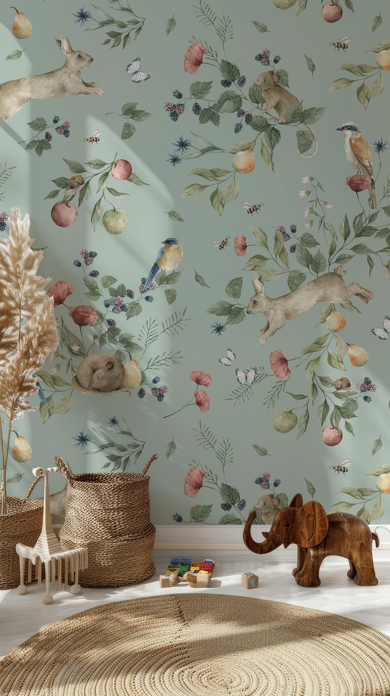 Subtelna tapeta z polnymi zwierzątkami wzór soczystych owoców to kwintesencja słodkości do pokoju dziecka. Jej realistyczny wygląd pozwoli na zachowanie powagi we wnętrzu, tak, aby mogła bawić i rozweselać dziecko latami.