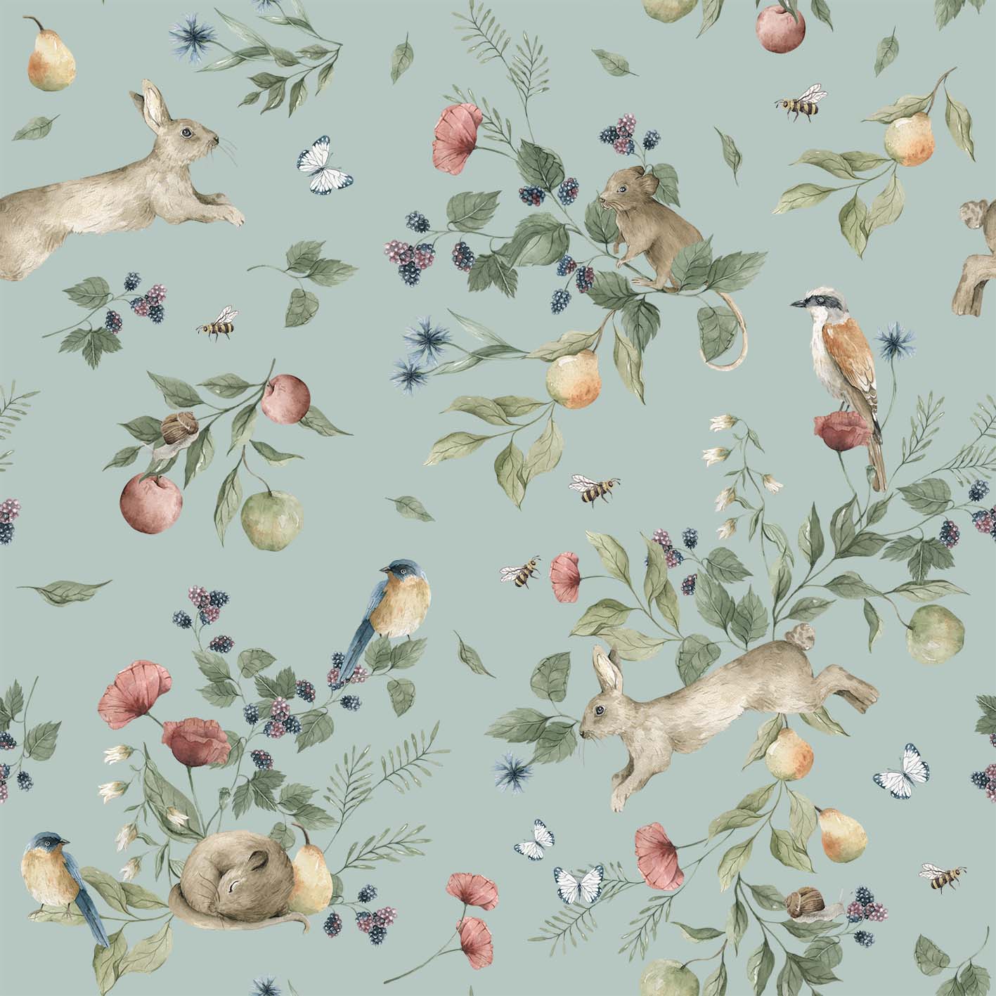 Tapeta Owocowy sad - turkus