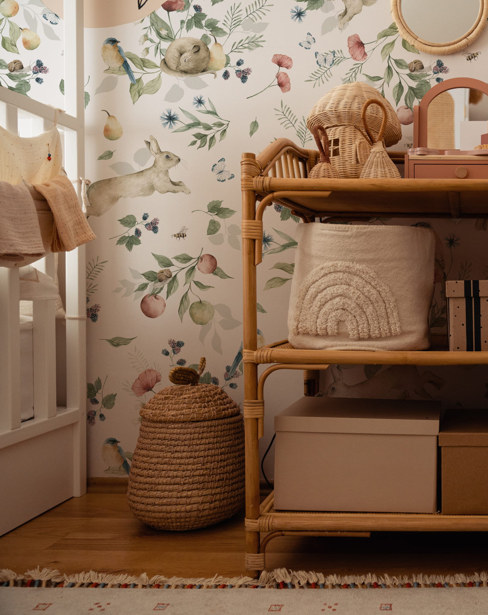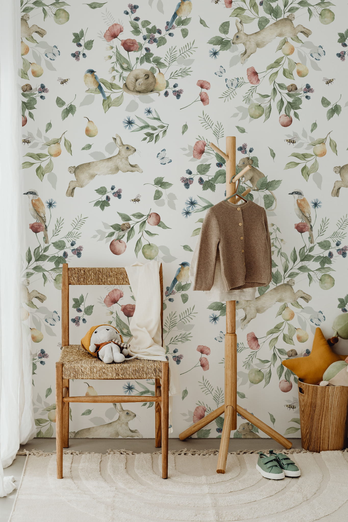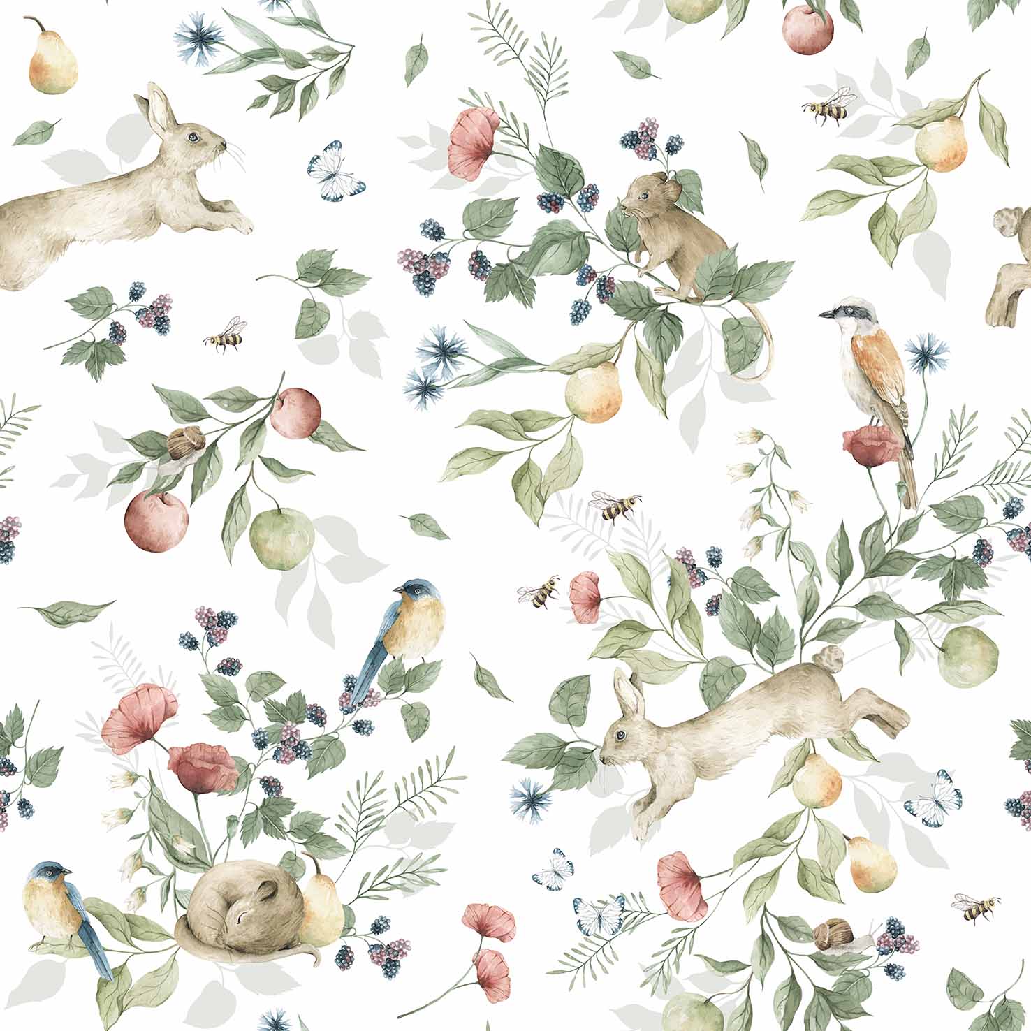 Delikatna, jasna i subtelna tapeta przedstawiająca przesłodkie polne istoty oraz piękno jej roślinności zachwyca kolorem i fakturą muśnięć farby akwarelowej. Jasne kolory rozświetlą wnętrze i otulą ciepłem. Taka tapeta to idealne rozwiązanie do pokoju dziecka lub sypialni. W połączeniu z drewnem tworzy zgrany duet, który będzie uniwersalny i ponadczasowy.