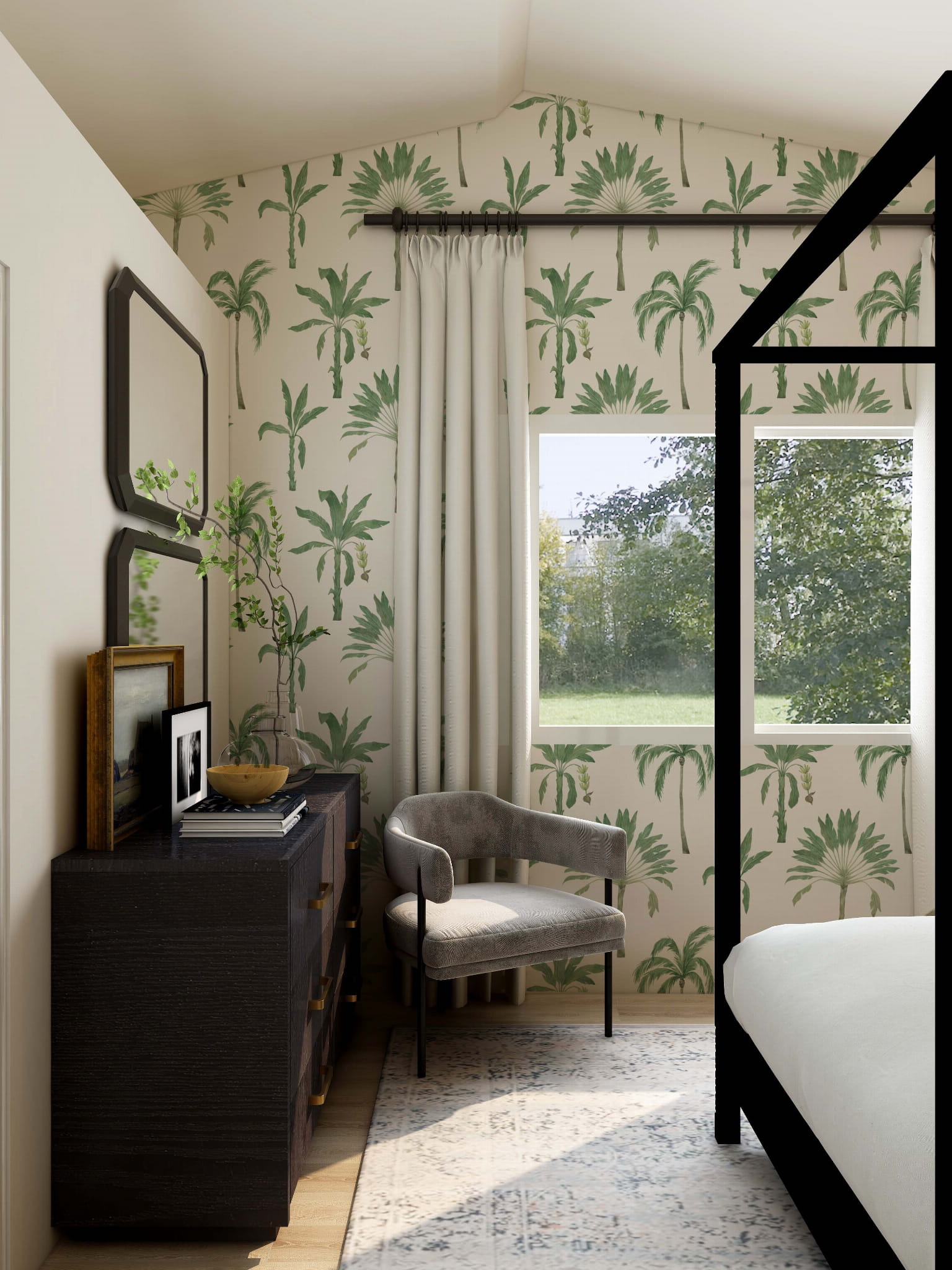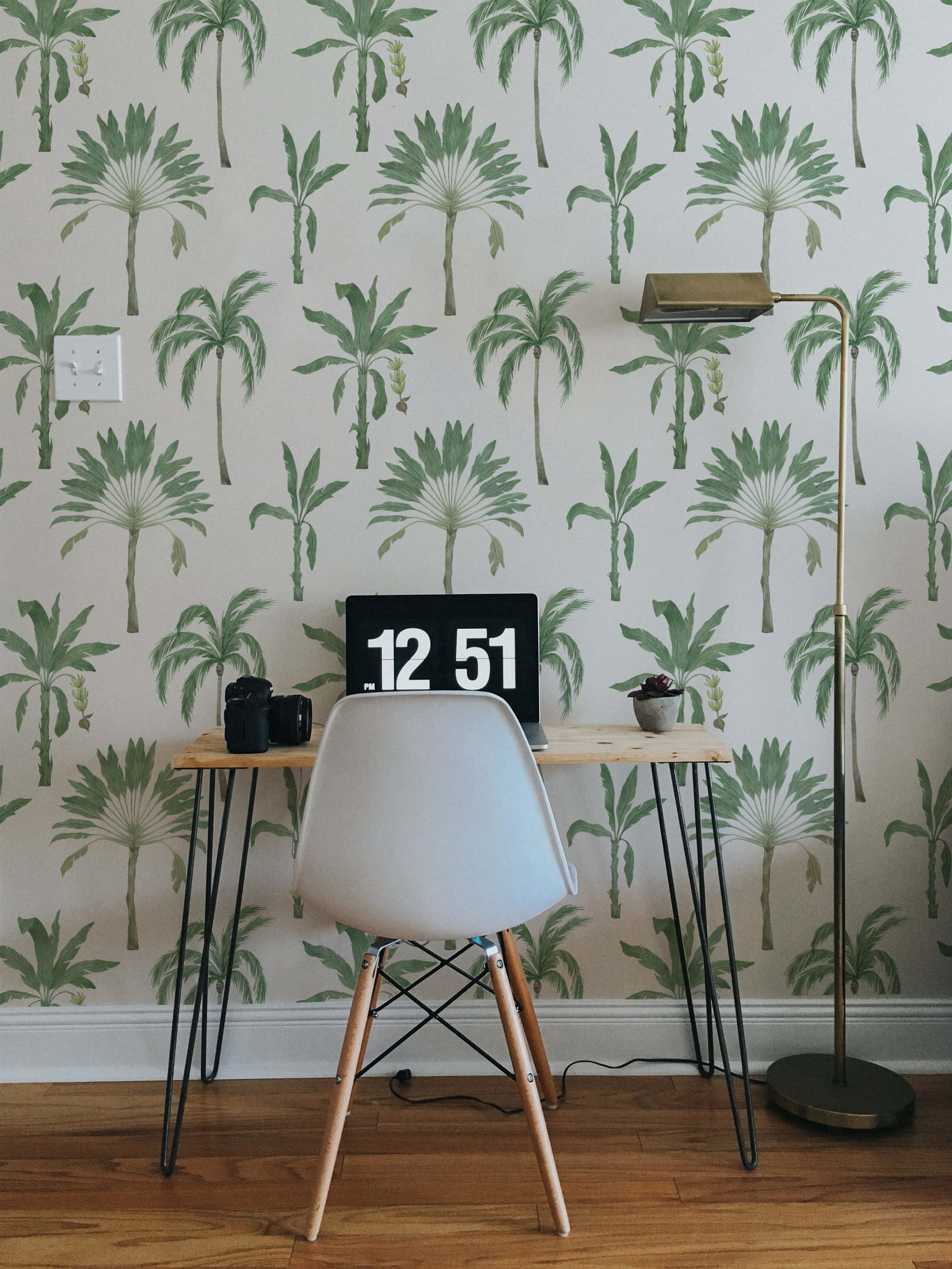 Stonowane zielone palmy świetnie sprawdzą się w pomieszczeniu, w którym brakuje roślin. Tapeta doda koloru każdemu wnętrzu i pozwoli twoim oczom odpocząć, a stylowy design szybko się nie znudzi.