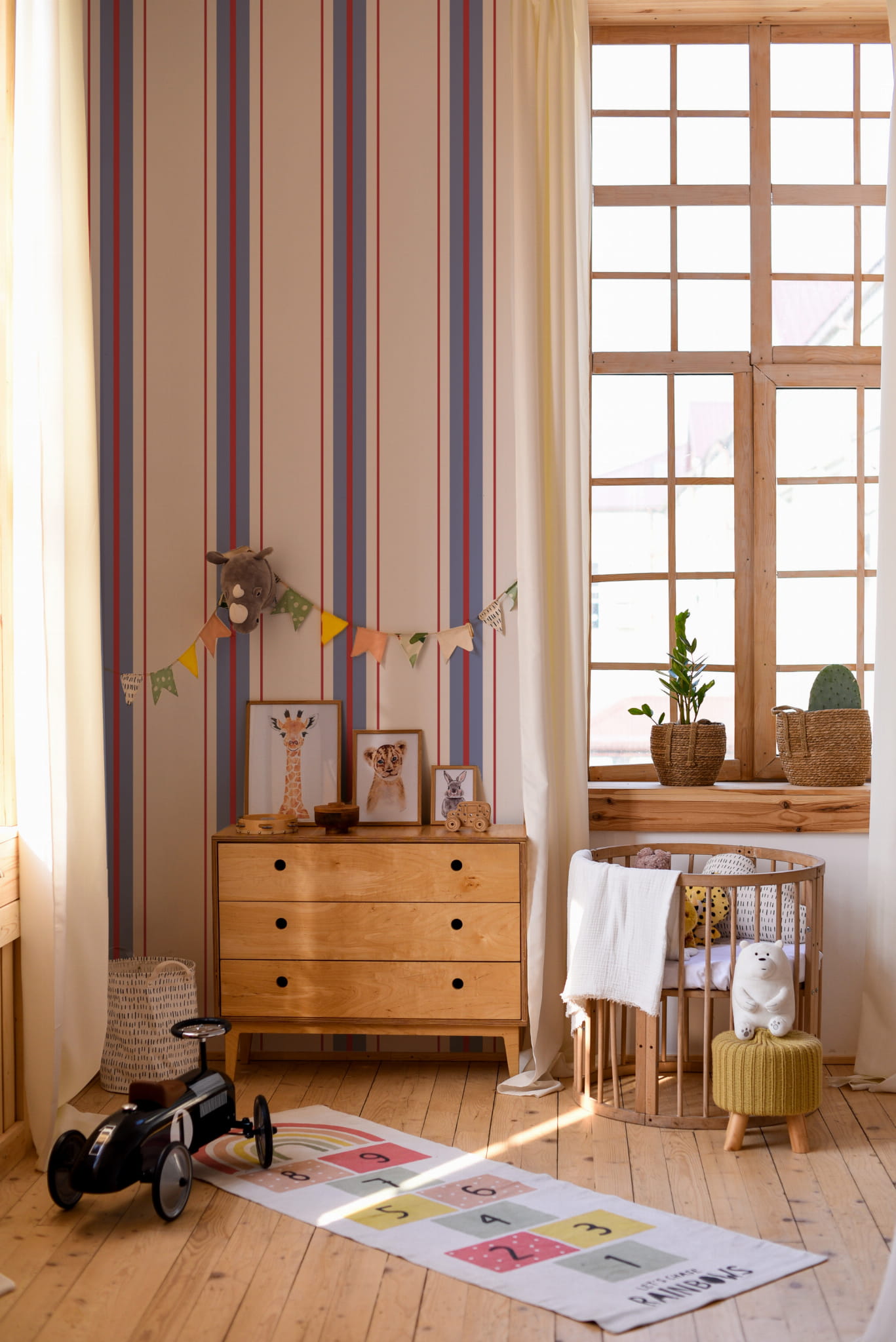 Tapeta Paski blue red kids