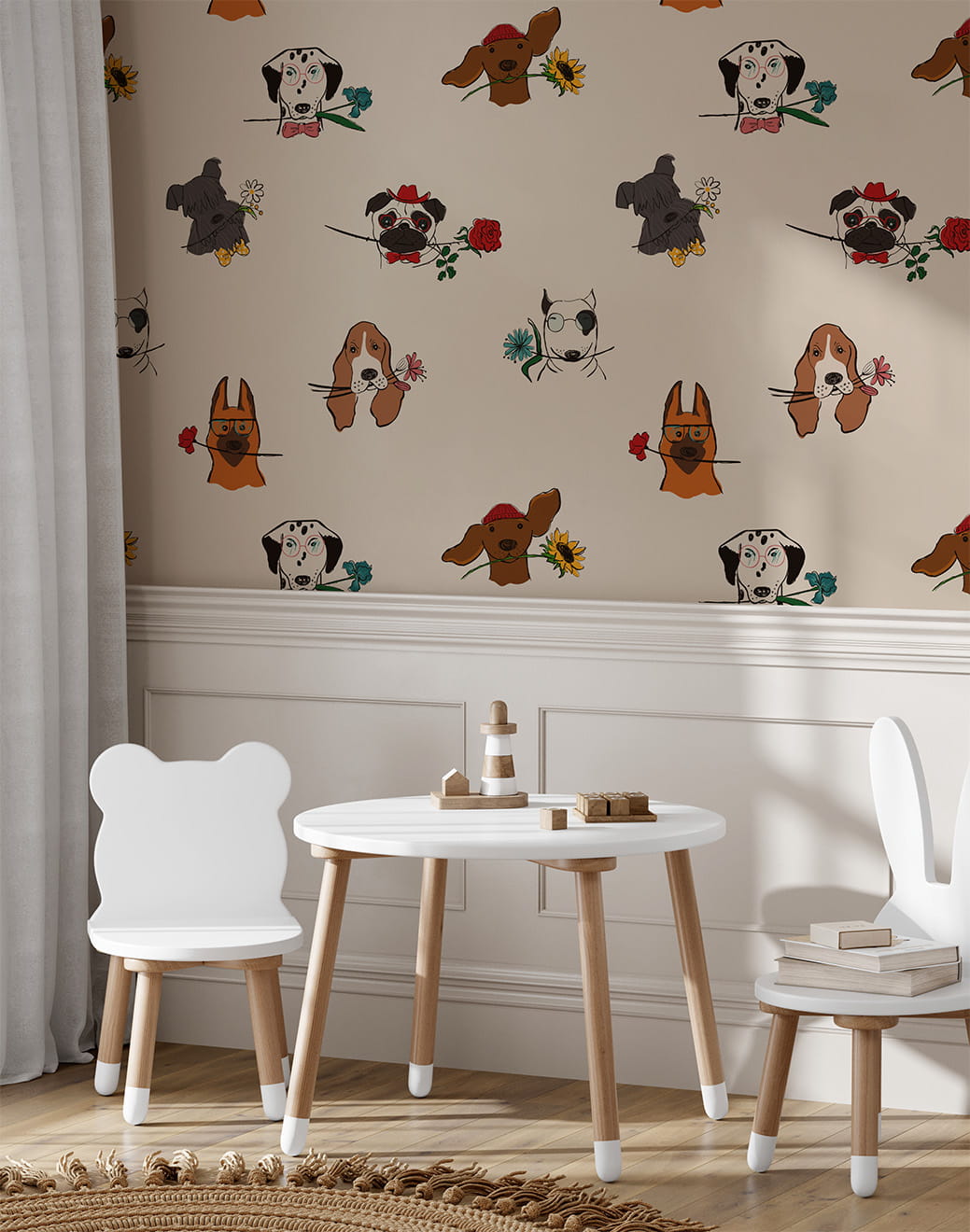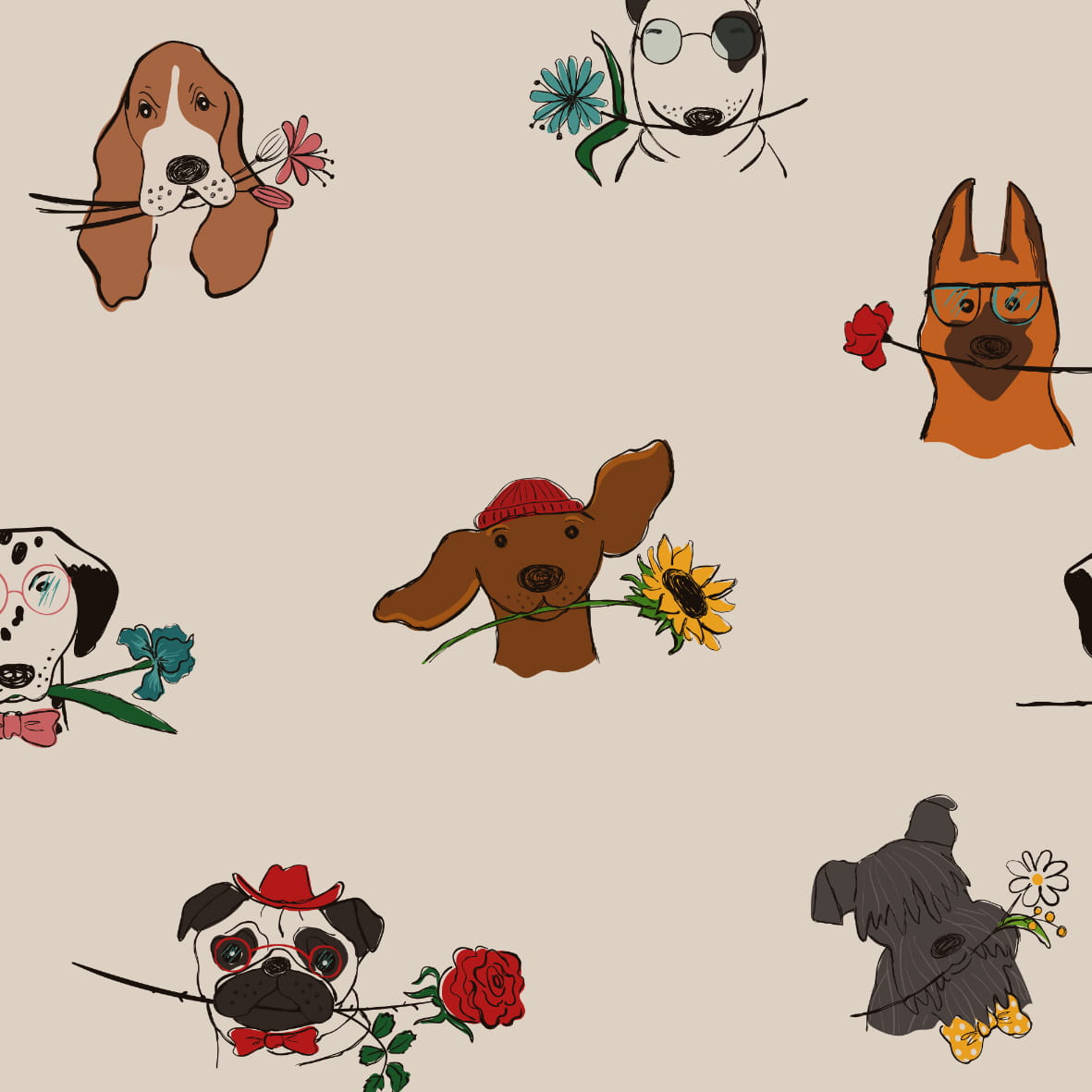 Tapeta Pieski z kwiatami