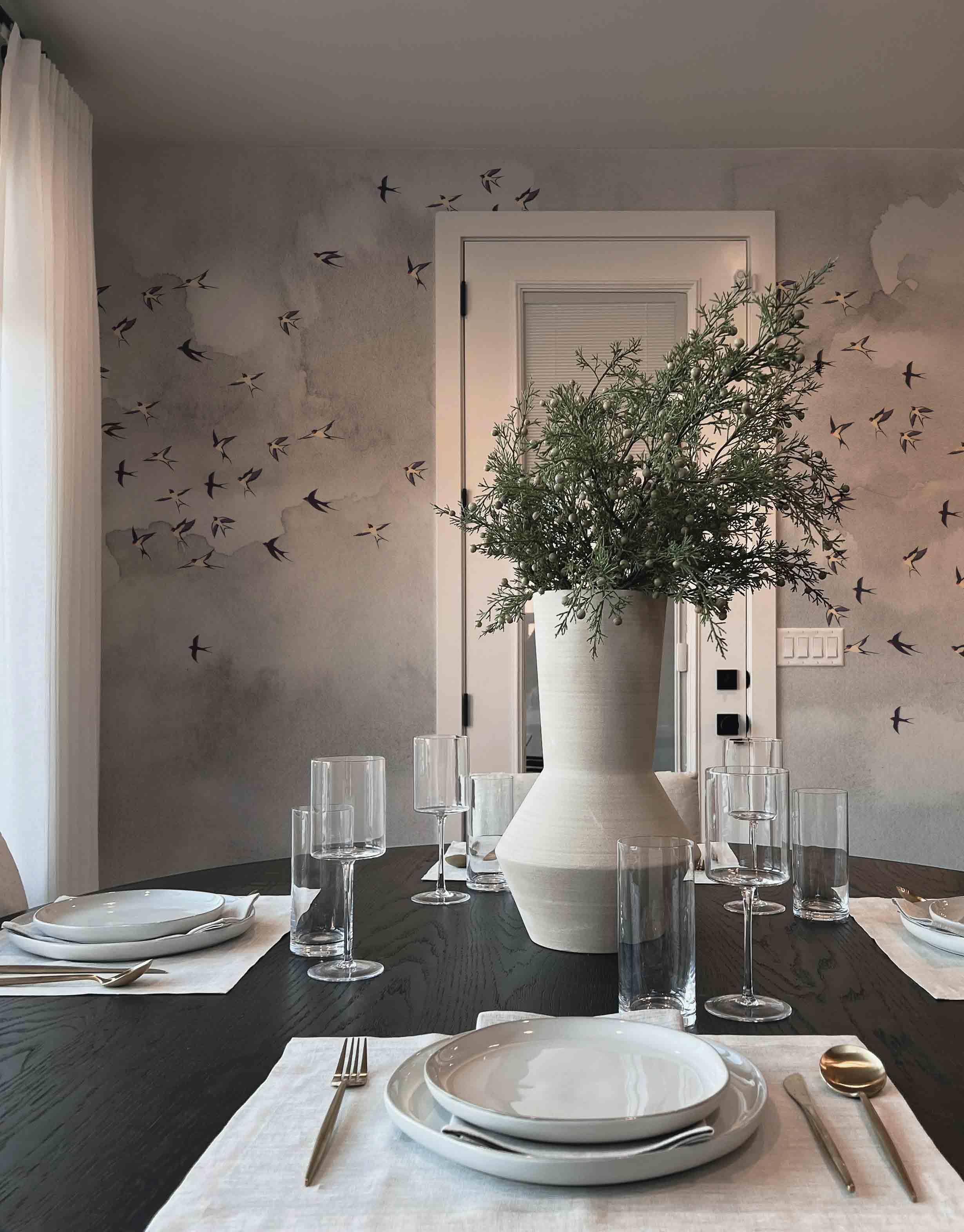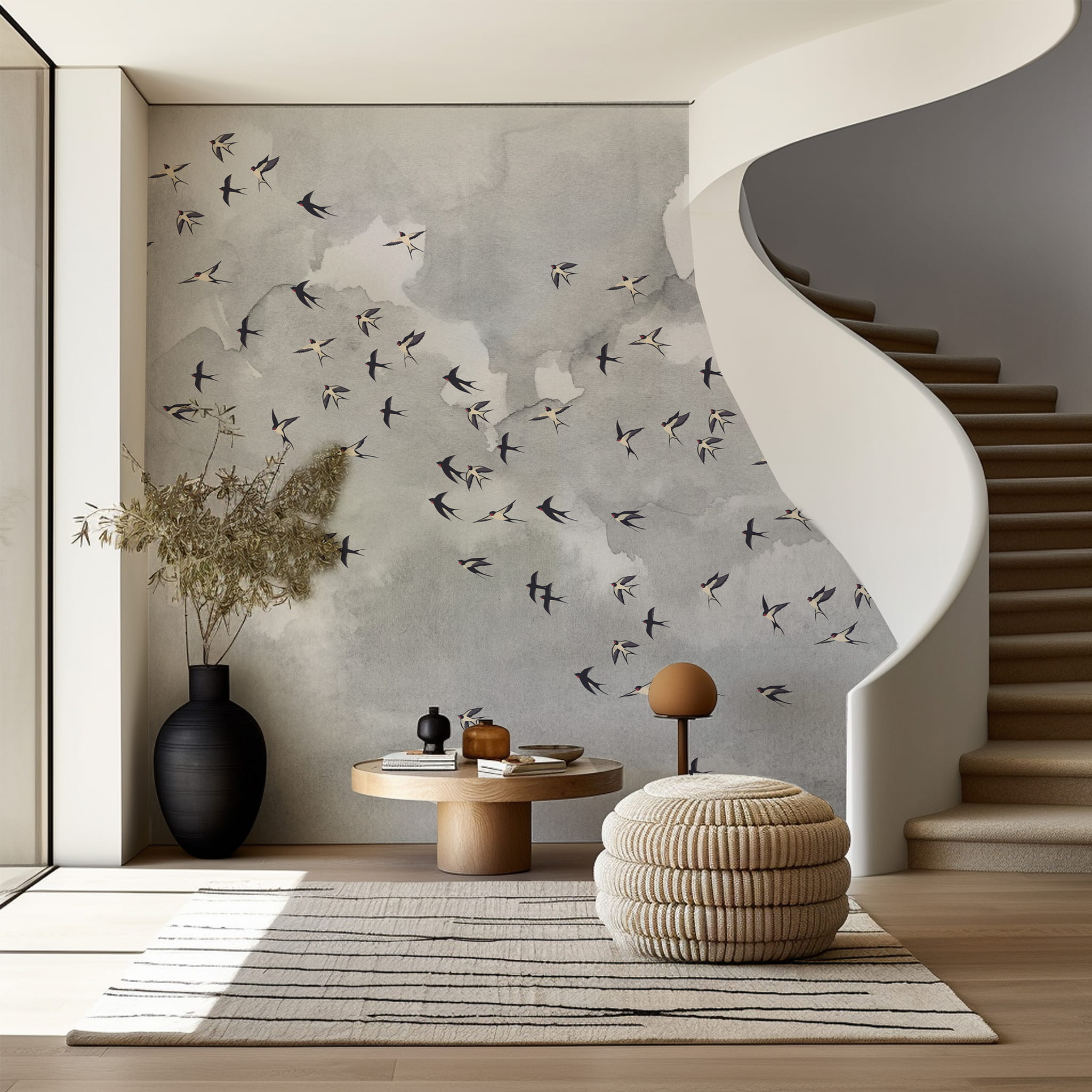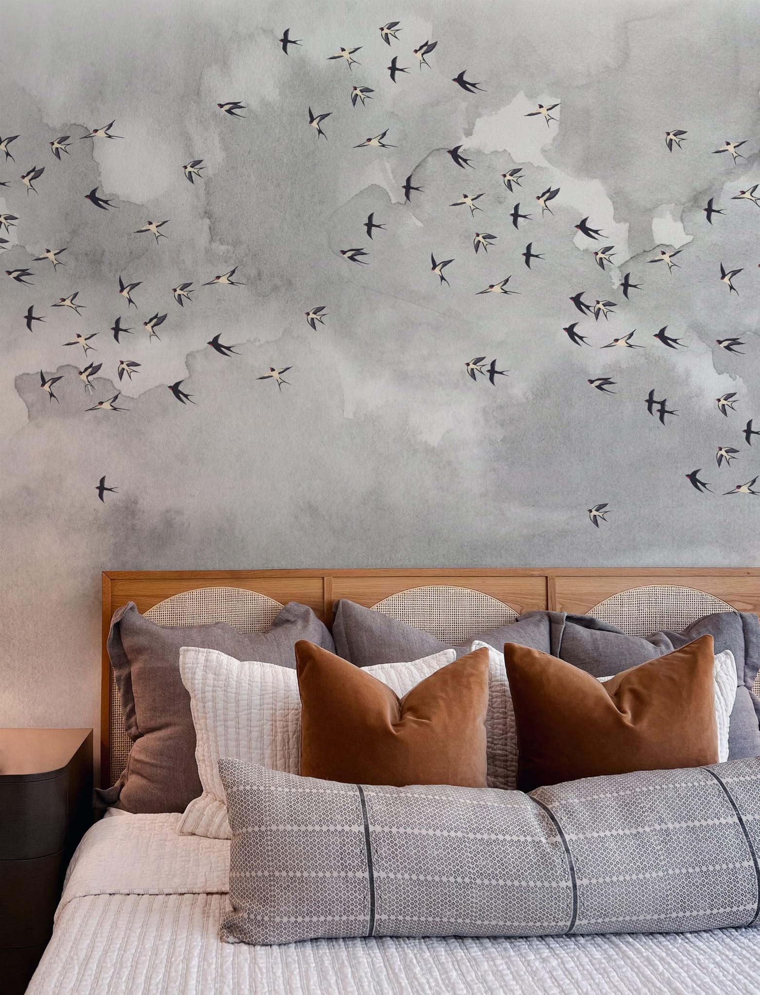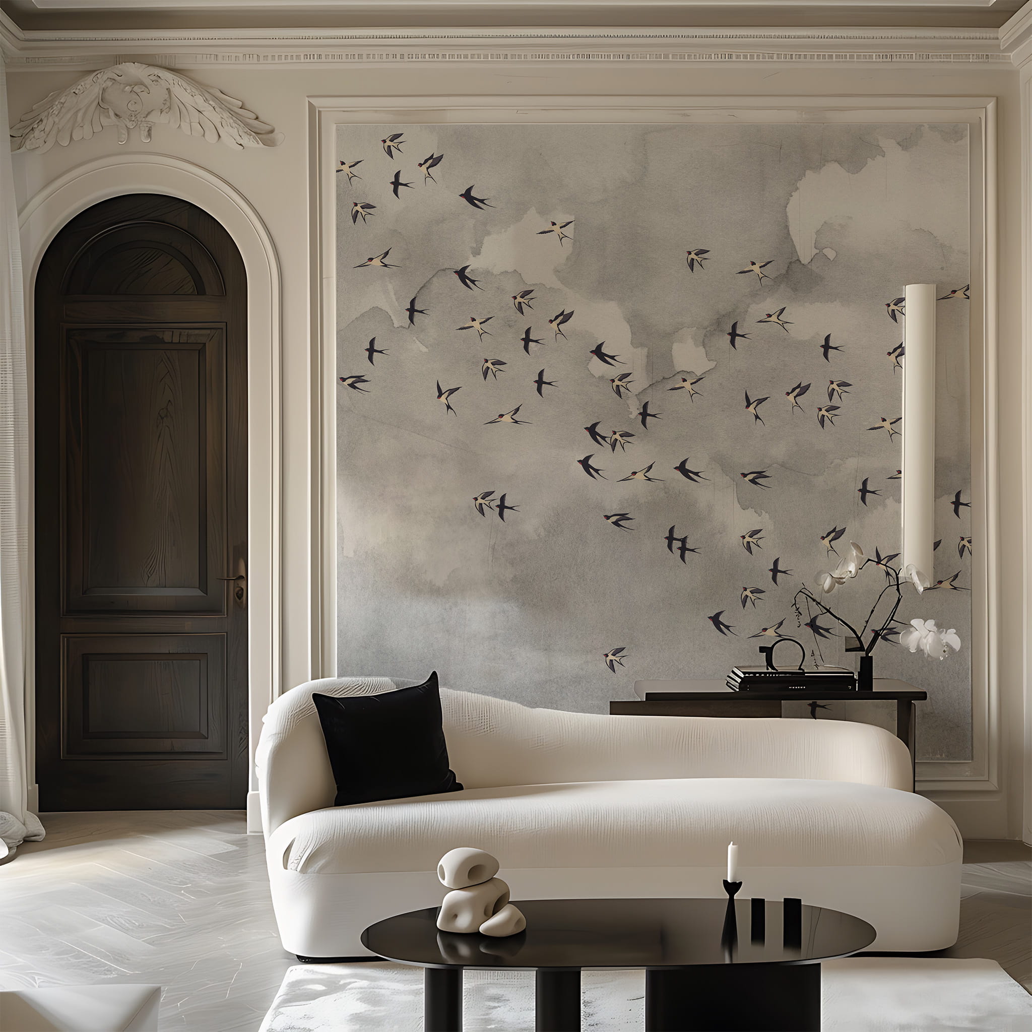 Daj się ponieść aż pod niebo i nadaj pokoju lekkości z naszą kultową tapetą w ptaki. Miękkie szare chmury nadadzą twoim ścianom faktury a delikatny wzór w ptaki doda pomieszczeniu życia.