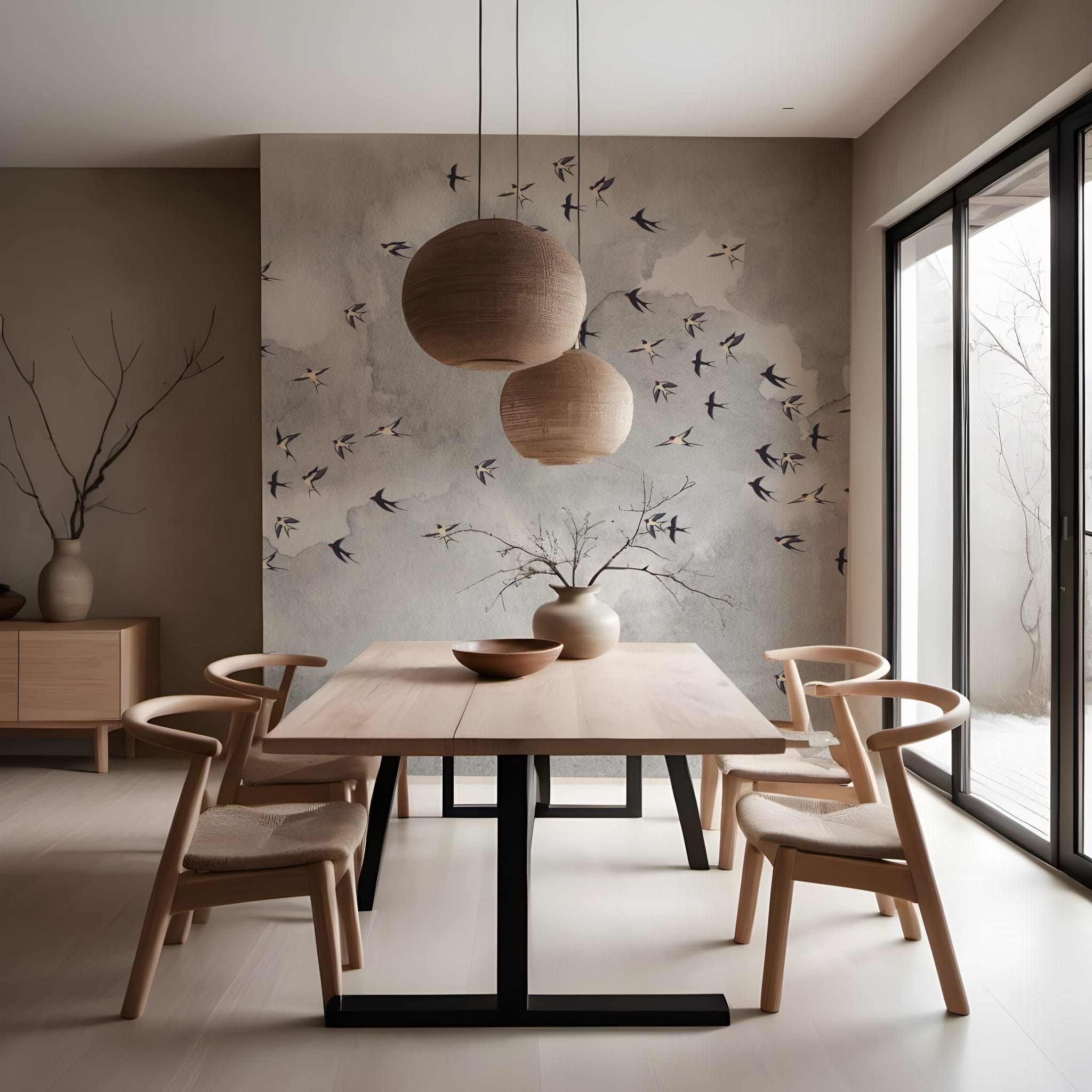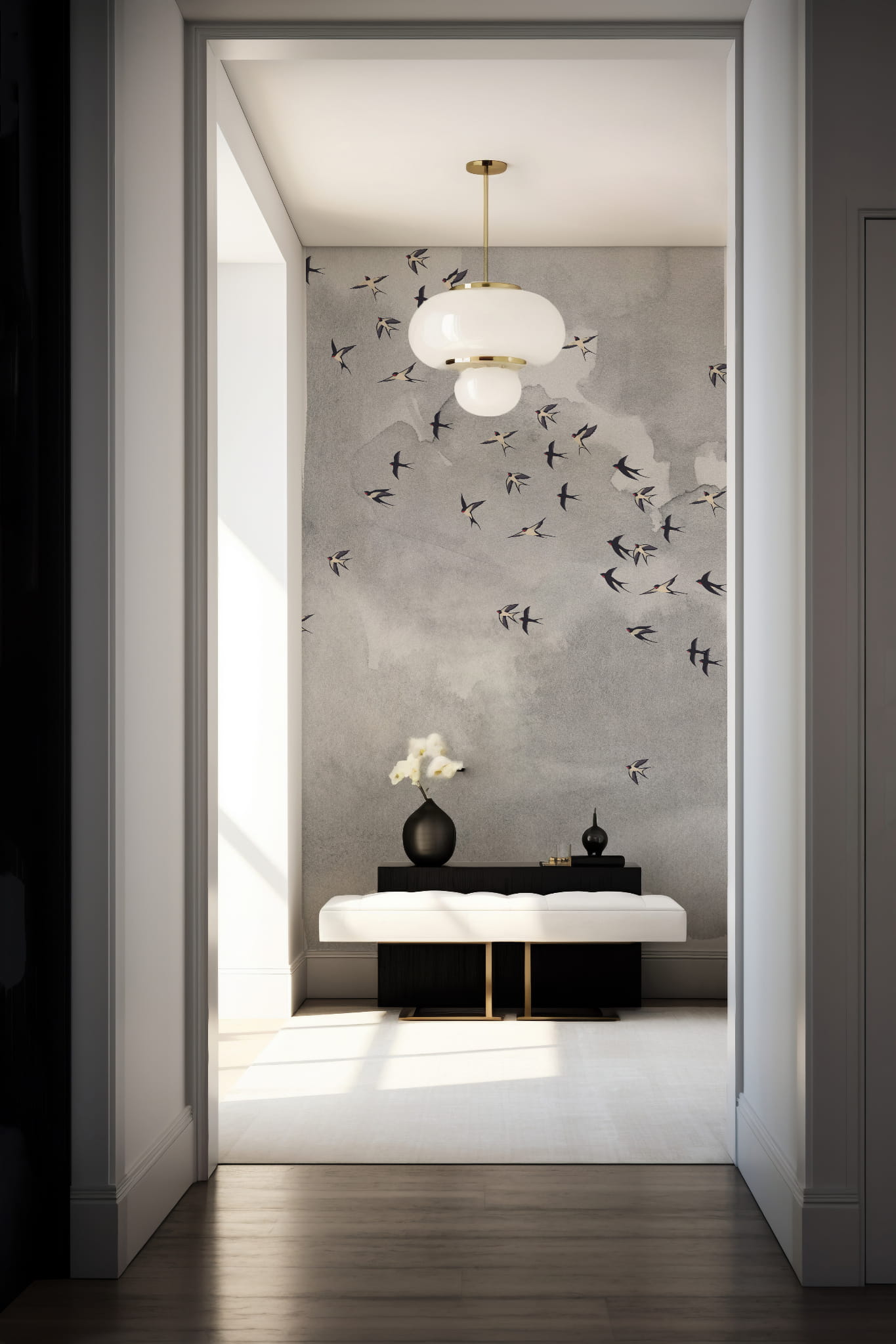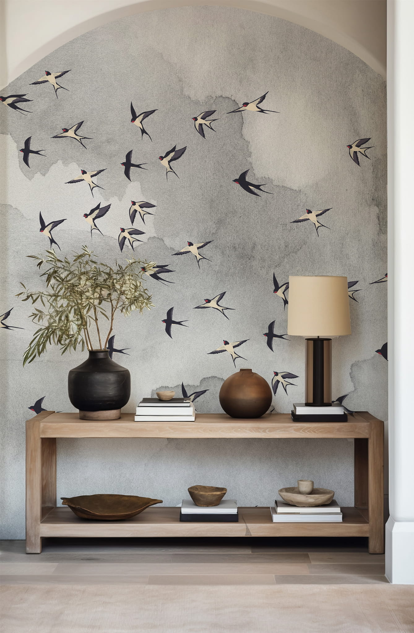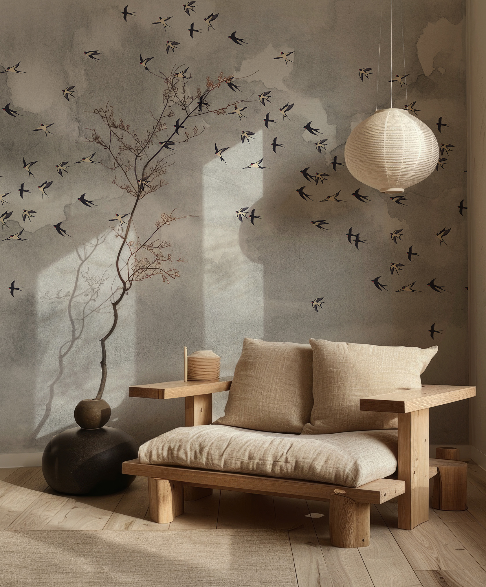 Daj się ponieść aż pod niebo i nadaj pokoju lekkości z naszą kultową tapetą w ptaki. Miękkie szare chmury nadadzą twoim ścianom faktury a delikatny wzór w ptaki doda pomieszczeniu życia.