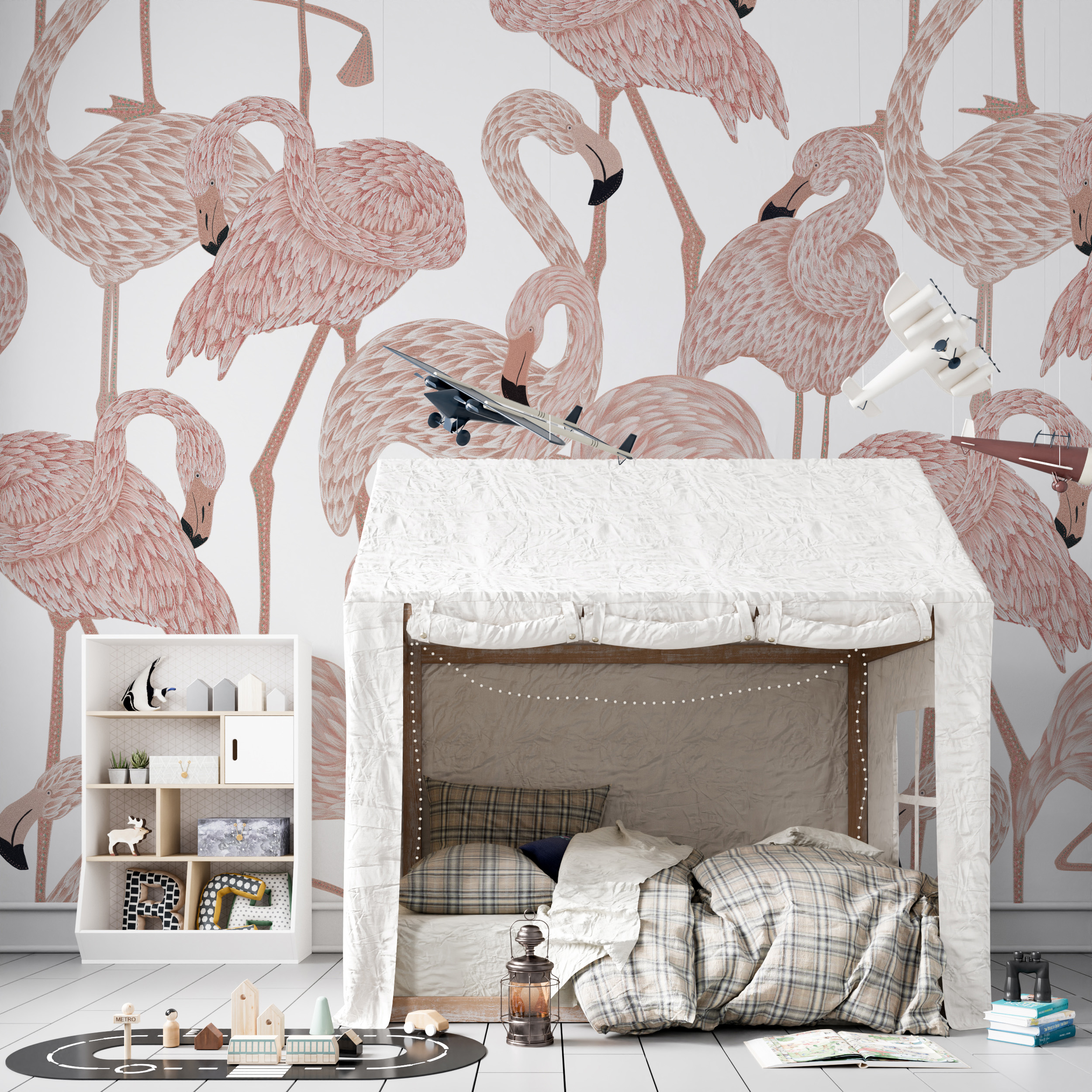 Różowe flamingi to idealna tapeta dla każdego kto chciałby wprowadzić trochę życia do swojego pokoju, zachowując przy tym prostą paletę kolorów. Delikatne odcienie różu świetnie sprawdzą się w każdym pomieszczeniu nie tylko jako akcent, ale i jako główna gwiazda show.