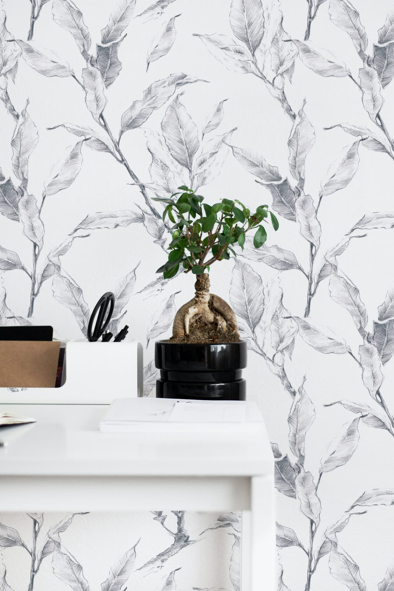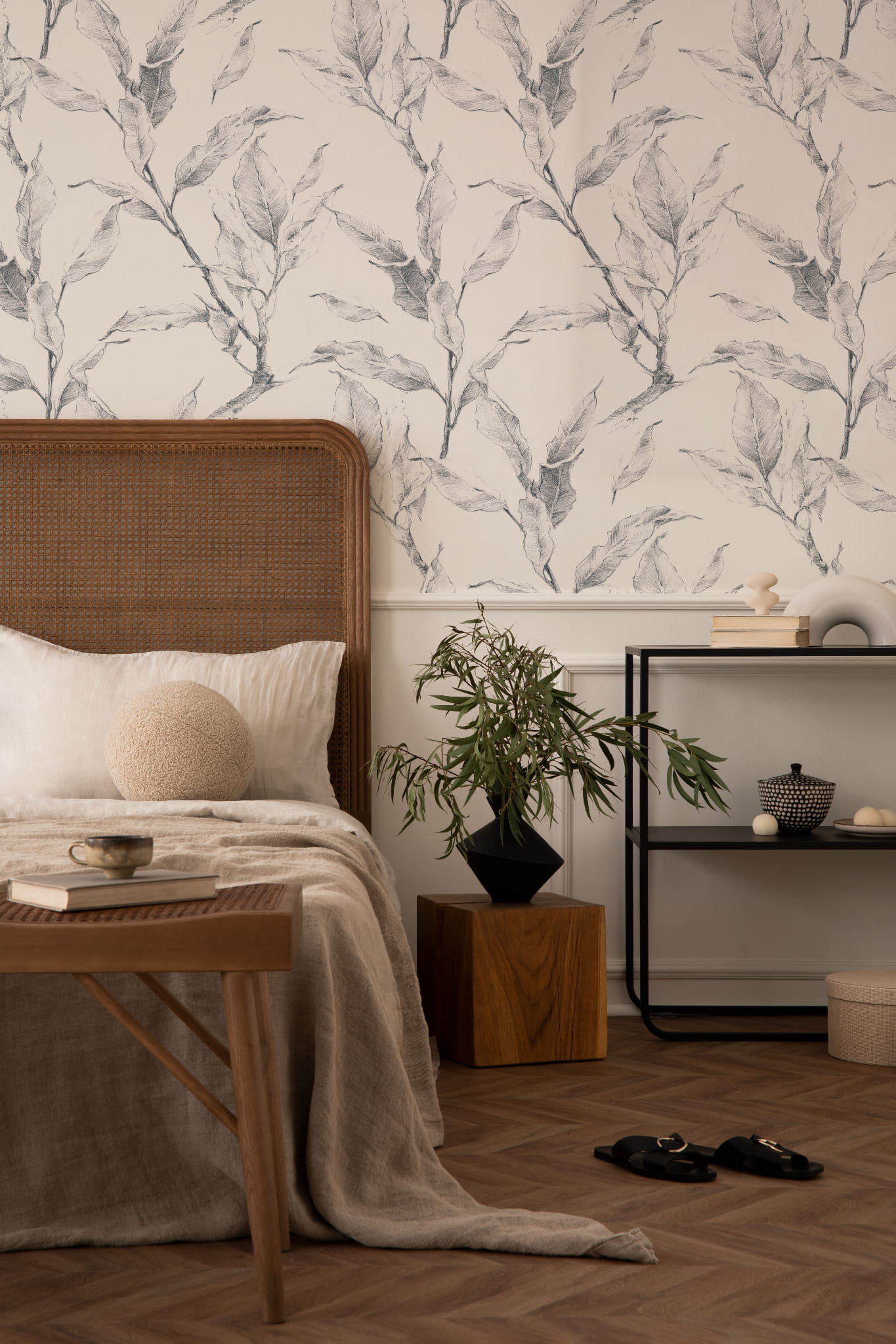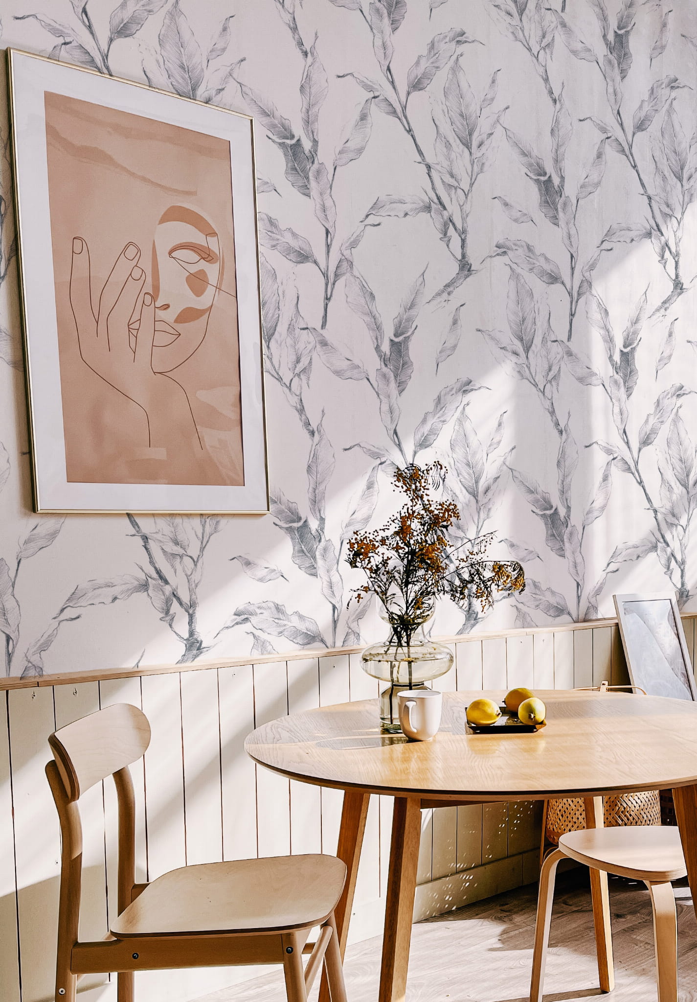 Dynamiczny i ekspresyjny szkic liści na neutralnym tle. Jej minimalistyczny wzór nadaje wnętrzu lekkości i subtelnego uroku natury. Doskonale wpisuje się w różnorodne aranżacje, dodając im oryginalnego akcentu artystycznego. Pozorna szybkość ustępuje miejsca dużej drobiazgowości i nagromadzenia lini ołówka.