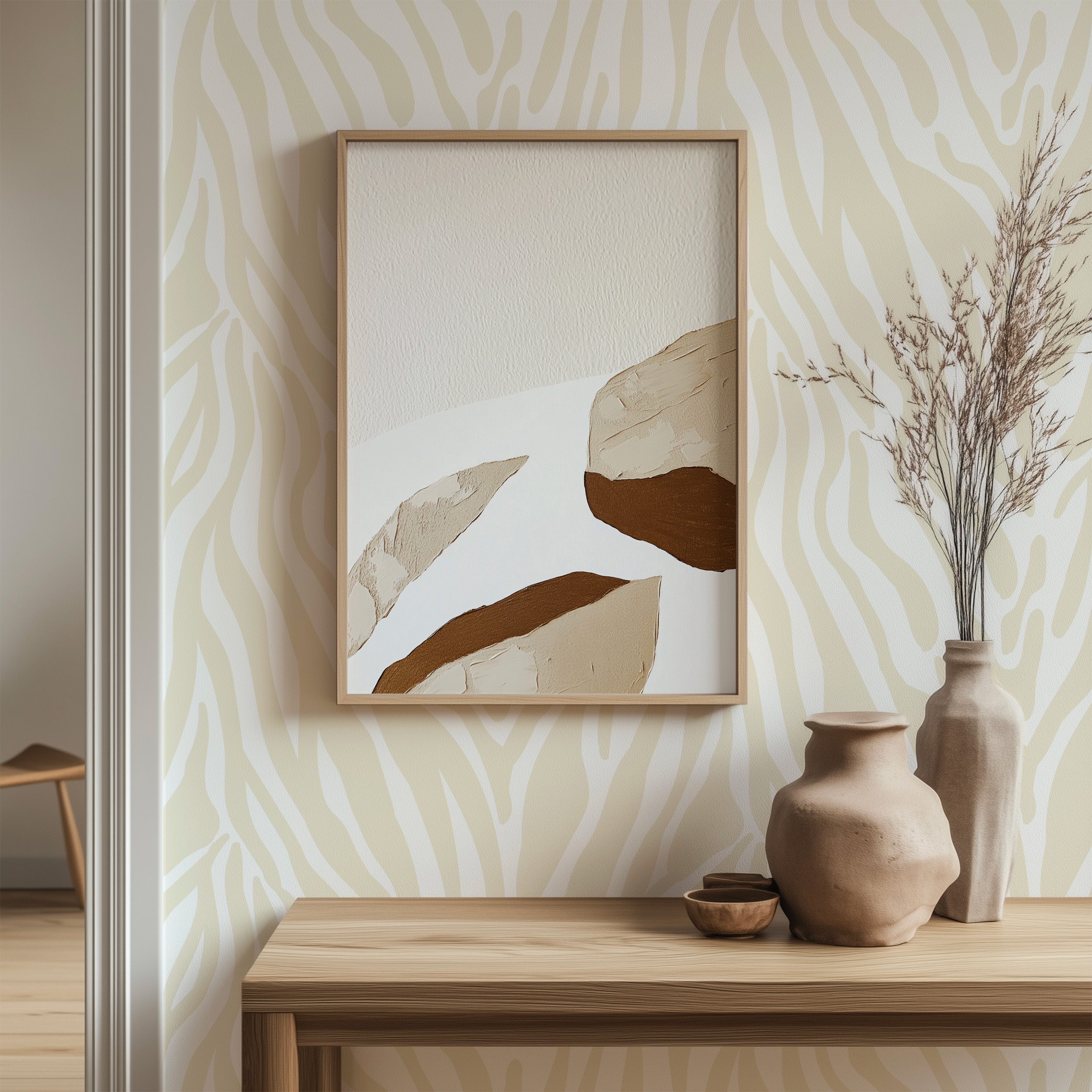 Drapieżna tapeta dla odważnych w dekorowaniu wnętrz. Ciemne kolory w połączeniu z jasnym pomarańczem i żółciami to zestaw, który nie pozwoli na nudę we wnętrzu. doskonale sprawdzi się w zestawieniu z ciemnymi dodatkami i drewnem.