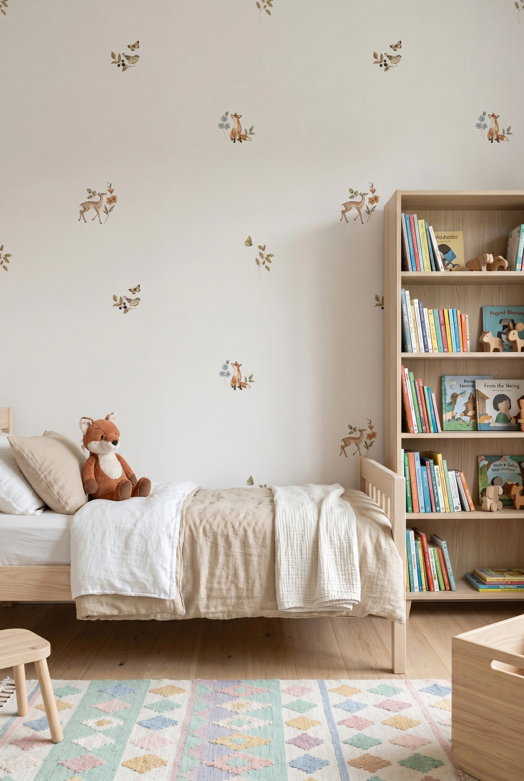Tapeta "W lesie" przenosi wnętrze w magiczny świat przyrody, oferując widok bujnego pełnego lasu roślin i zwierząt. Przesłodka tapeta w leśne zwierzątka to doskonały pomysł na odczarowanie pokoju dziecka. W prosty sposób można nadać mu słodkiego i wesołego charakteru, który będzie bawił dziecko od najmłodszych lat.